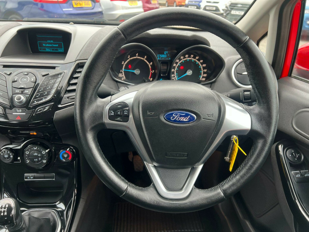 This Ford Fiesta Zetec presents a superb ownership proposition having been cared for by only two owners from new. Powered by an efficient 1.0L petrol engine, this Euro 6 compliant model is registered in 2015 and features the popular Zetec trim. For your convenience and comfort, it comes equipped with manual air conditioning to keep you cool and Bluetooth hands free phone connectivity, allowing you to stay connected safely on the go. The vehicle also benefits from a partial service history, offering a reassurance regarding its maintenance.. 12V Power Socket - Front, 15in Alloy Wheels - 5x2 Spoke, ABS - Anti-lock Braking System, AUX Connection, Aesthetic Lighting Package, Air Conditioning - Manual, Airbags - Curtain, Airbags - Driver Side Knee, Airbags - Front Passenger, Airbags - Head and Thorax, Airbags - Passenger Deactivation, Bluetooth Hands-free Phone, Body Colour Exterior Mirrors, Brake Warning Lights - Automatic Flashing of Brake Lights Under Heavy Braking, Bumpers - Front and Rear - Body Colour, Centre Console - with Trinket Tray - Two Cup Holders, Chrome Belt Line Finisher, Courtesy Light - Overhead with Theatre-Style Dimming, Courtesy Lights with Map Reading Lights, DDS - Deflation Detection System, Daytime Running Lamps, Door Handles - Body Colour, Door Mirrors - Electrically Operated and Heated, Drivers Airbag, EBA - Emergency Brake Assist, EBD - Electronic Brakeforce Distribution, ECOmode, EPAS - Electric Power Assisted Steering, ESP - Electronic Stability Programme, Electric Windows - Front with One Touch Lowering Drivers, Emergency Assistance, Emergency Brake Warning - Automatic Hazard Warning Lights, Engine Immobiliser, Flow Through Centre Console, Ford AM-FM CD Audio System, Ford Easy Fuel Capless Refuelling System with Misfuel Inhibitor, Ford SYNC, Front Fog Lights - Chrome Bezel Rings, Front Lower Grille Insert and Surround - Black, Front Seatback Map Pockets - Driver and Passenger, Front Upper Grille - Chrome Finish Surround, Front Upper Grille Insert - Chrome bars, Gear Knob - Leather, Gearshift Indicator Light, Gearshift Knob - Leather-Trimmed with Chrome Finish Bezel, Glovebox - Illuminated, Head Restraints - 2-way Adjustment, Head Restraints - Rear 2-Way Adjustment, Headlights - Follow Me Home, Headlights - Halogen Projector with Silver Bezel, Headliner - Woven, Heated Front Windscreen, High-Mounted Rear Brake Light, Hill Start Assist, IPS - Intelligent Protection System, Interior Door Lever - Chrome Finish, LED Ambient Courtesy Lighting, Leather-Trimmed Handbrake, Loadspace Compartment Light, Loadspace Floor Carpet, Locking Wheel Nuts, MyKey, Pollen Filter, Rake and Reach Steering Adjustable, Rear Courtesy Lights, Rear Spoiler - Body Colour, Remote Central Locking, Removable Package Tray, Seats - 60-40 Split Folding Back and Fixed Cushion, Seats - Drivers 4-Way Adjustment, Seats - Front Comfort Style, Seats - ISOFIX Mounting Brackets for Child Seats, Speakers - x6, Steering Wheel - 3-Spoke - Leather Trimmed with Bezel, Steering Wheel - Multifunction, Stowage Pockets - Driver and Front Passenger Seatbacks, Tailgate Handle - Body Colour with Chrome Finisher, Tinted Glass, Traction Control - TC, Trip Computer, Tyre Inflator Kit, Tyre Pressure Monitoring System, USB Connection, Voice Control - Audio, Spare Wheel - 14in Steel. Part service history