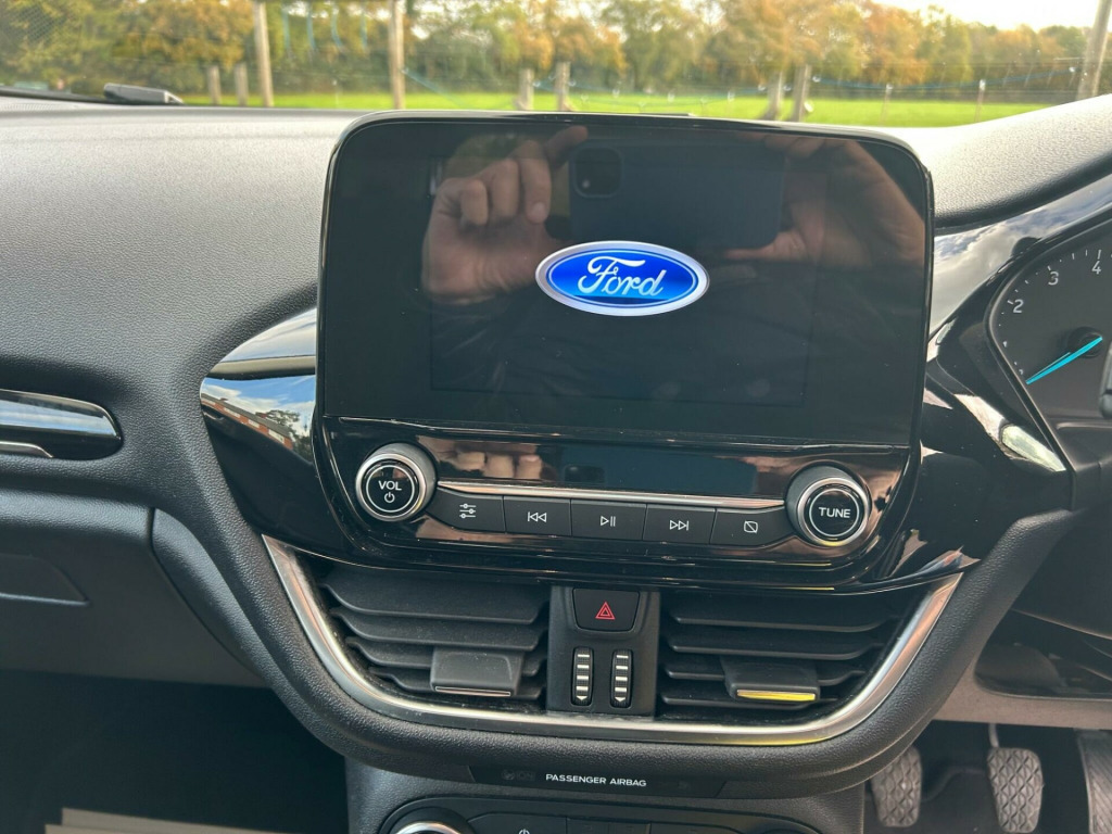 This 2018 Ford Fiesta Zetec offers an impressive 59 mpg, making it a wonderfully economical choice for your daily driving needs. This particular model is a T Zetec variant, powered by a 1.0 litre petrol engine and meeting Euro 6 emissions standards. It comes equipped with the NCAP Pack, which includes automatic headlights that switch on and off as needed. Inside, you'll find a Ford DAB Radio featuring Ford SYNC 3, offering seamless integration with Apple CarPlay and Android Auto for your smartphone. For your comfort, this Fiesta also includes manual air conditioning.The performance of this Ford Fiesta is also noteworthy, achieving 0 to 62 miles per hour in just 10.6 seconds. Its low CO2 emissions are a significant advantage, indicating a more environmentally friendly performance compared to many other vehicles in its class. The combination of its fuel efficiency, modern technology, and responsive acceleration makes this 2018 Fiesta Zetec a compelling option for those seeking a practical and enjoyable driving experience. in alloy wheels - 8 spoke, 3-spoke leather trimmed steering wheel with audio controls, abs - anti-lock braking system, air conditioning - manual, airbags - driver, airbags - front passenger, airbags - front and rear side curtain, airbags - side curtain, airbags - side impact, body coloured electrically operated door mirrors with integrated side indicators, centre console with two cupholders and 12v power point, chrome belt line finisher, chrome upper grille, courtesy light - front map light and rear - overhead led, door handles - body colour, door lever - chrome finish, ebd - electronic brakeforce distribution, electrically-operated front windows with one touch drivers, electronic stability control - esc with traction control and emergency brake assist - eba, electronic stability programme - esp with hill start assist, ford dab radio with ford sync3 - apple car play and android auto, ford easy fuel system, front bumper - body colour, front fog lamps with cornering lights, gearshift knob - leather-trimmed, glovebox - illuminated, headlights - automatic on-off, headlights - halogen projector with black bezel and dedicated led daytime running lights, headliner - woven, ips - intelligent protection system, leather-trimmed handbrake, manual drivers seat height adjustment, mykey, ncap pack, overhead console - sunglasses holder, power steering, quickclear heated windscreen, rear bumper - body coloured upper and self colour lower, rear fog lamps, rear seat - 60-40 split back and cushion, rear spoiler - body colour, remote central locking and engine immobiliser, seats - front comfort style, steering column - rake and reach adjustment, tailgate wash-wipe, thatcham alarm, trip computer, tyre pressure monitoring system - tpms, tyre repair kit, warning triangle storage, wipers - standard with 6 speed interval settings, dynamo cloth - ebony