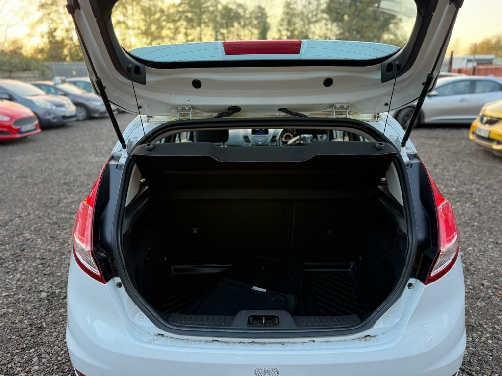 This 2016 Ford Fiesta Zetec is a superb example, having had only two owners from new. It features a responsive 1.0-litre petrol engine and meets the Euro 6 emission standards. For your convenience, this Fiesta Zetec comes equipped with Bluetooth hands-free phone connectivity and manual air conditioning, ensuring a comfortable and connected driving experience.With an impressive fuel economy of up to 66 miles per gallon, this Fiesta Zetec offers excellent value for money, making it a more economical choice compared to many other vehicles in its class. Its low CO2 emissions further contribute to its appeal, highlighting its efficiency and environmental consideration. v power socket - front, 15in alloy wheels - 5x2 spoke, abs - anti-lock braking system, aux connection, aesthetic lighting package, air conditioning - manual, airbags - curtain, airbags - driver side knee, airbags - front passenger, airbags - head and thorax, airbags - passenger deactivation, bluetooth hands-free phone, body colour exterior mirrors, brake warning lights - automatic flashing of brake lights under heavy braking, bumpers - front and rear - body colour, centre console - with trinket tray - two cup holders, chrome belt line finisher, courtesy light - overhead with theatre-style dimming, courtesy lights with map reading lights, dds - deflation detection system, daytime running lamps, door handles - body colour, door mirrors - electrically operated and heated, drivers airbag, eba - emergency brake assist, ebd - electronic brakeforce distribution, ecomode, epas - electric power assisted steering, esp - electronic stability programme, electric windows - front with one touch lowering drivers, emergency assistance, emergency brake warning - automatic hazard warning lights, engine immobiliser, flow through centre console, ford am-fm cd audio system, ford easy fuel capless refuelling system with misfuel inhibitor, ford sync, front fog lights - chrome bezel rings, front lower grille insert and surround - black, front seatback map pockets - driver and passenger, front upper grille - chrome finish surround, front upper grille insert - chrome bars, gear knob - leather, gearshift indicator light, gearshift knob - leather-trimmed with chrome finish bezel, glovebox - illuminated, head restraints - 2-way adjustment, head restraints - rear 2-way adjustment, headlights - follow me home, headlights - halogen projector with silver bezel, headliner - woven, heated front windscreen, high-mounted rear brake light, hill start assist, ips - intelligent protection system, interior door lever - chrome finish, led ambient courtesy lighting, leather-trimmed handbrake, loadspace compartment light, loadspace floor carpet, locking wheel nuts, mykey, pollen filter, rake and reach steering adjustable, rear courtesy lights, rear spoiler - body colour, remote central locking, removable package tray, seats - 60-40 split folding back and fixed cushion, seats - drivers 4-way adjustment, seats - front comfort style, seats - isofix mounting brackets for child seats, speakers - x6, steering wheel - 3-spoke - leather trimmed with bezel, steering wheel - multifunction, stowage pockets - driver and front passenger seatbacks, tailgate handle - body colour with chrome finisher, tinted glass, traction control - tc, trip computer, tyre inflator kit, tyre pressure monitoring system, usb connection, voice control - audio