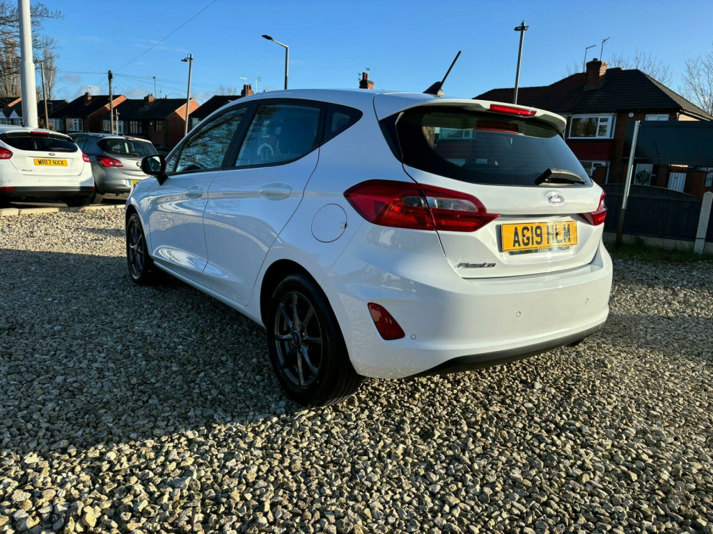 5 Service Stamps In The Book - MOT August 2026 With No AdvisoriesThis 2019 Ford Fiesta Zetec T is a superb example, boasting remarkably low mileage for its age at just 43,000 miles. Powered by an efficient 1.0L petrol engine, this Euro 6 compliant model offers a blend of performance and economy. The Zetec trim level comes well equipped, featuring the intuitive Ford SYNC system with a responsive touchscreen, DAB radio, and seamless integration for both Apple CarPlay and Android Auto, allowing you to connect your smartphone effortlessly. For your comfort, manual air conditioning keeps the cabin pleasant, while automatic headlights ensure optimal visibility in varying conditions.The Ford Fiesta Zetec T stands out with its impressive fuel efficiency, further highlighted by its low CO2 emissions, making it a considerate choice. Its acceleration is brisk, reaching 0-62mph in a respectable 10.6 seconds, demonstrating its capable performance. These attributes, combined with its low mileage and desirable features, indicate that this particular Fiesta offers a superior ownership experience compared to many other vehicles in its class.. 15in Alloy Wheels - 8 Spoke, 3-Spoke Leather Trimmed Steering Wheel with Audio Controls, Air Conditioning - Manual, Airbags - Driver and Front Passenger, Airbags - Front Side Impact, Airbags - Front and Rear Side Curtain, Anti-Lock Braking System - ABS with Electronic Brake Force Distribution - EBD, Centre Console with Two Cupholders and 12V Power Point, Chrome Belt Line Finisher, Courtesy Light - Front Map Light and Rear - Overhead LED, Door Handles - Body Colour, Door Lever - Chrome Finish, Door Mirrors - Heated - Electric - Integrated Side Indicators - Body Coloured, EPAS - Electric Power Assisted Steering, Emergency Brake Warning - Automatic Hazard Warning Lights, Enhanced Electronic Stability Control - ESC with Traction Control - Emergency Brake Assist - EBA - Hill Start Assist - HSA and Trailer Sway Control, Ford Easy-Fuel Capless Refuelling System, Ford SYNC with Touchscreen - DAB Radio - Apple CarPlay and Android Auto, Front Bumper - Body Coloured, Front Fog Lights including Cornering Lights - Bright Bezel, Front Seat - Drivers Manual Height and Fore-Aft Adjustment, Front Upper Grille - Chrome - Horizontal Bars, Gearshift Knob - Leather-Trimmed, Glovebox - Illuminated, Headlights - Automatic On-Off, Headlights - Halogen Projector with Black Bezel and Dedicated LED Daytime Running Lights, Headliner - Woven, IPS - Intelligent Protection System, Leather-Trimmed Handbrake, MyKey, NCAP Pack, Overhead Console - Sunglasses Holder, Quickclear Heated Windscreen, Rear Bumper - Body Coloured Upper and Self Colour Lower, Rear Fog Lamps, Rear Lights - Non-LED, Rear Seat - 60-40 Split Back and Cushion, Rear Spoiler - Body Colour with Centre High Mounted Stop Light, Remote Central Locking and Engine Immobiliser, Seats - Front Comfort Style, Seats - ISOFIX Mounting Provision for Child Seats, Steering Column - Rake and Reach Adjustment, Tailgate Wash-Wipe, Thatcham Category 1 Alarm, Trip Computer, Tyre Pressure Monitoring System - TPMS, Tyre Repair Kit, Warning Triangle Storage, Wipers - Standard with 6 Speed Interval Settings.