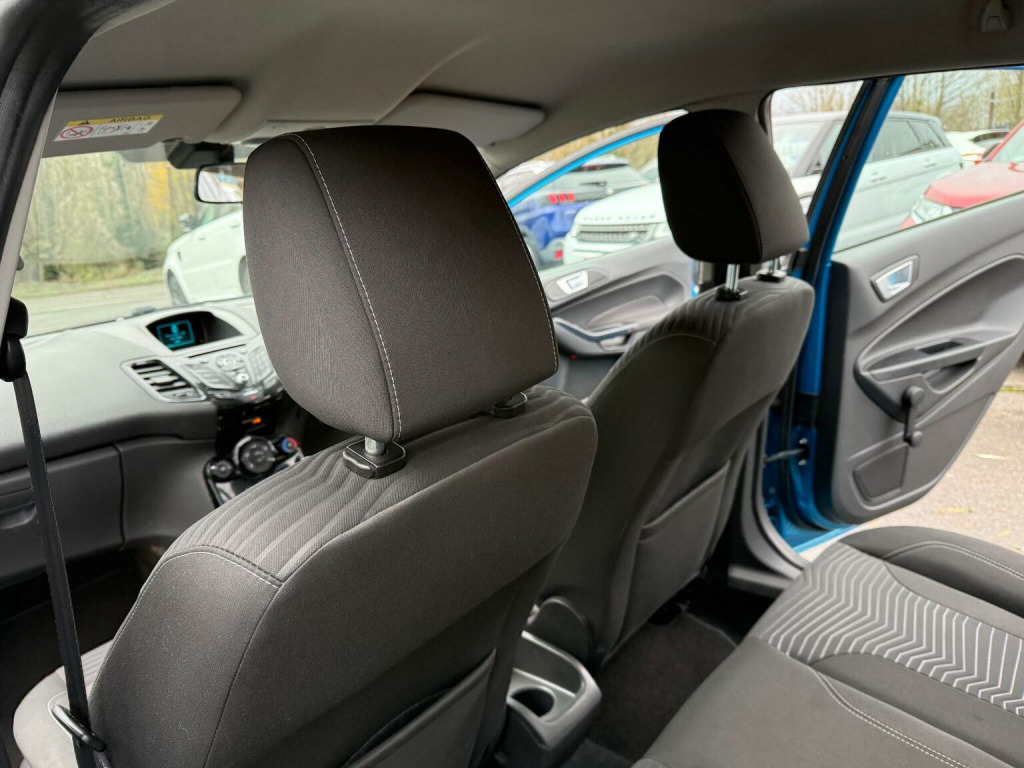 This 2015 Ford Fiesta Zetec T has been cherished by just one owner from new, boasting a full dealership service history with its last service completed at 71,900 miles, and an MOT valid until August 2026. This well maintained example features a 1.0L petrol engine and is presented in the Zetec trim. Notable features include the desirable City Pack, which incorporates rear parking assistance sensors, stylish 16 inch seven spoke alloy wheels, and rear privacy glass for added comfort and security. The car also benefits from a full dress up kit and an adjustable boot load floor, offering practical versatility. This Ford Fiesta Zetec T is a standout choice, offering impressive fuel economy of 66 mpg, which is significantly better than many other vehicles in its class. Furthermore, its low CO2 emissions highlight its efficiency and environmental consideration. This combination of excellent running costs and a comprehensive service record makes this Fiesta a sensible and appealing option for any driver.