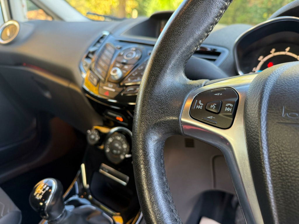 NEW ARRIVAL: We are delighted to present this Very Clean Ford Fiesta Zetec finished in white. One previous Owner from new with only 32,000 miles backed up with a Full Service History. 12 Months Mot, Extended Warranty, Two Remote Keys, HPi Clear Check Report along with all the relevant Paperwork. Just some key features include: Bluetooth connectivity, Rear Parking Sensors, Electric Folding Door Mirrors, Alloy Wheels, Daytime Running Lamps, Air Conditioning and lots more.All our vehicles undergo comprehensive HPI checks and are supplied with Gold Extended Parts and Labour Warranties for your peace of mind. Each vehicle is fully valeted and provided with a valid MOT along with all the relevant paperwork..We are a family-run business with over 35 years of experience in the motor industry, we take great pride in delivering exceptional service, expert guidance, providing a friendly and personal touch to all of our customers.Viewings are available strictly by appointment, allowing us to dedicate our full attention to you and ensure a truly personal experience.For further information regarding this vehicle, or to discuss part exchange opportunities, please do not hesitate to contact us. We look forward to assisting you and welcoming you in the near future. ont and rear parking sensors with power-foldable door mirrors, spare wheel - 14in steel, 12v power socket - front, 15in alloy wheels - 5x2 spoke, abs - anti-lock braking system, aux connection, aesthetic lighting package, air conditioning - manual, airbags - curtain, airbags - driver side knee, airbags - front passenger, airbags - head and thorax, airbags - passenger deactivation, bluetooth hands-free phone, body colour exterior mirrors, brake warning lights - automatic flashing of brake lights under heavy braking, bumpers - front and rear - body colour, centre console - with trinket tray - two cup holders, chrome belt line finisher, courtesy light - overhead with theatre-style dimming, courtesy lights with map reading lights, dds - deflation detection system, daytime running lamps, door handles - body colour, door mirrors - electrically operated and heated, drivers airbag, eba - emergency brake assist, ebd - electronic brakeforce distribution, ecomode, epas - electric power assisted steering, esp - electronic stability programme, electric windows - front with one touch lowering drivers, emergency assistance, emergency brake warning - automatic hazard warning lights, engine immobiliser, flow through centre console, ford am-fm cd audio system, ford easy fuel capless refuelling system with misfuel inhibitor, ford sync, front fog lights - chrome bezel rings, front lower grille insert and surround - black, front seatback map pockets - driver and passenger, front upper grille - chrome finish surround, front upper grille insert - chrome bars, gear knob - leather, gearshift indicator light, gearshift knob - leather-trimmed with chrome finish bezel, glovebox - illuminated, head restraints - 2-way adjustment, head restraints - rear 2-way adjustment, headlights - follow me home, headlights - halogen projector with silver bezel, headliner - woven, heated front windscreen, high-mounted rear brake light, hill start assist, ips - intelligent protection system, interior door lever - chrome finish, led ambient courtesy lighting, leather-trimmed handbrake, loadspace compartment light, loadspace floor carpet, locking wheel nuts, mykey, pollen filter, rake and reach steering adjustable, rear courtesy lights, rear spoiler - body colour, remote central locking, removable package tray, seats - 60-40 split folding back and fixed cushion, seats - drivers 4-way adjustment, seats - front comfort style, seats - isofix mounting brackets for child seats, speakers - x6, steering wheel - 3-spoke - leather trimmed with bezel, steering wheel - multifunction, stowage pockets - driver and front passenger seatbacks, tailgate handle - body colour with chrome finisher, tinted glass, traction control - tc, trip computer, tyre inflator kit, tyre pressure monitoring system, usb connection, voice control - audio