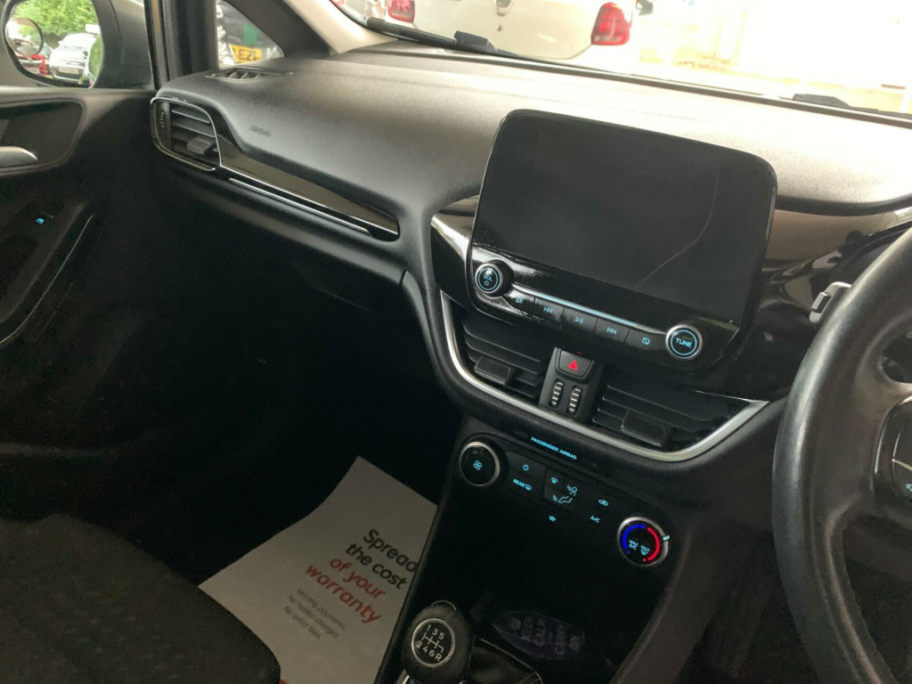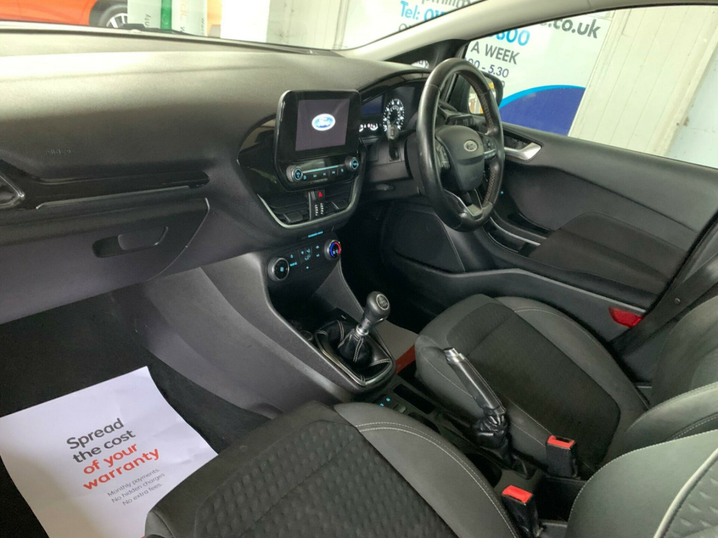 Discover this 2017 Ford Fiesta T Zetec, a well presented example of this popular hatchback. This model benefits from a 1.0L petrol engine and is Euro 6 compliant, ensuring efficient performance. Inside, you'll find manual air conditioning for your comfort, and the NCAP pack includes automatic headlights that switch on and off as needed. Entertainment and connectivity are well catered for with the Ford DAB radio featuring Ford SYNC3, which seamlessly integrates with both Apple CarPlay and Android Auto, allowing you to access your smartphone apps on the go.This Ford Fiesta T Zetec offers impressive running costs, boasting a highlight fuel economy of 66 miles per gallon and low CO2 emissions, making it an economical choice. Its acceleration from 0 to 62 miles per hour in just 10.5 seconds indicates a responsive driving experience. These highlights demonstrate how this Fiesta offers a compelling combination of efficiency and performance compared to other vehicles in its class. in alloy wheels - 8 spoke, 3-spoke leather trimmed steering wheel with audio controls, abs - anti-lock braking system, air conditioning - manual, airbags - driver, airbags - front passenger, airbags - front and rear side curtain, airbags - side curtain, airbags - side impact, body coloured electrically operated door mirrors with integrated side indicators, centre console with two cupholders and 12v power point, chrome belt line finisher, chrome upper grille, courtesy light - front map light and rear - overhead led, door handles - body colour, door lever - chrome finish, ebd - electronic brakeforce distribution, electrically-operated front windows with one touch drivers, electronic stability control - esc with traction control and emergency brake assist - eba, electronic stability programme - esp with hill start assist, ford dab radio with ford sync3 - apple car play and android auto, ford easy fuel system, front bumper - body colour, front fog lamps with cornering lights, gearshift knob - leather-trimmed, glovebox - illuminated, headlights - automatic on-off, headlights - halogen projector with black bezel and dedicated led daytime running lights, headliner - woven, ips - intelligent protection system, leather-trimmed handbrake, manual drivers seat height adjustment, mykey, ncap pack, overhead console - sunglasses holder, power steering, quickclear heated windscreen, rear bumper - body coloured upper and self colour lower, rear fog lamps, rear seat - 60-40 split back and cushion, rear spoiler - body colour, remote central locking and engine immobiliser, seats - front comfort style, steering column - rake and reach adjustment, tailgate wash-wipe, thatcham alarm, trip computer, tyre pressure monitoring system - tpms, tyre repair kit, warning triangle storage, wipers - standard with 6 speed interval settings