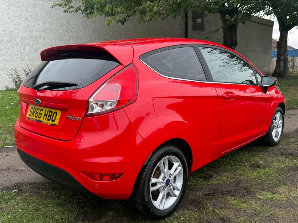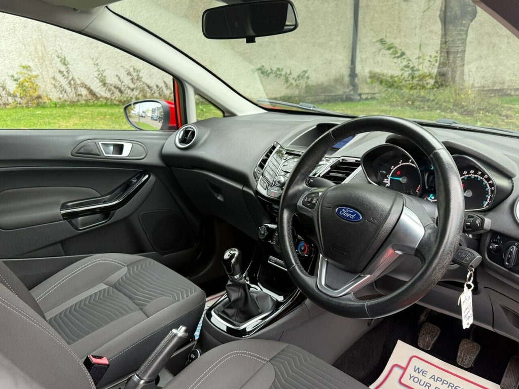 NEW CLUTCH / 3 MONTHS PARTS AND LABOUR WARRANTY + 12 MONTHS MOT PRIOR TO SALE Boasting an impressive full dealership service history and only two previous owners, this 2017 Ford Fiesta T Zetec presents a superb example of a well maintained vehicle. Powered by an efficient 1.0L petrol engine, this Euro 6 compliant model offers a remarkable fuel economy of up to 66 mpg, making it an economical choice for daily driving. With a low mileage of just 48,200 miles for its age and a 12 month MOT provided on purchase, this Fiesta Zetec is ready for its next chapter. A 3 month warranty is also included for your peace of mind. This Ford Fiesta stands out with its exceptional fuel efficiency, achieving 66 mpg, which is significantly better than many other vehicles in its class. Its low CO2 emissions further contribute to its appeal, indicating a more environmentally conscious performance. Combined with its low mileage and comprehensive service history, this 2017 Fiesta T Zetec represents a smart and reliable option for any driver seeking quality and value. 15in Alloy Wheels - 5x2 Spoke, Ambient Lighting, Bumpers - Front and Rear Body Colour, Centre Console, Courtesy Light - Front with Map Reading , Courtesy Light - Overhead with Theatre-S, Courtesy Light - Rear, Door Handles - Body Colour, Door Mirrors - Electrically-operated and, Double Locking, EPAS - Electric Power Assisted Steering, ESP - Electronic Stability Programme, Electrically-Operated Front Windows with, Emergency Brake Warning - Automatic Haza, Engine Immobiliser - Passive Anti-theft , First Aid Kit and Warning Traingle Stora, Footwell Lights - Driver and Passenger, Ford DAB with Ford SYNC, Ford Easy Fuel Capless Refuelling System, Front Fog Lights - Chrome Bezel Rings, Front Lower