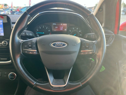 Powered by one of Ford's trusted 1.0-litre petrol engines and paired with a smooth 6-speed manual gearbox, this Fiesta produces up to 99 bhp while still returning an impressive 65.7 mpg on the combined cycle. The Fiesta makes an excellent city car and is also a great option for new drivers, thanks to its Group 10 insurance rating. Inside, the hatchback comfortably seats five and offers ample legroom for longer journeys. At the rear, you'll find a generously sized boot providing plenty of space for your everyday needs. This Ford also comes equipped with a range of great features, including telephone connectivity, a touchscreen display, a speed limiter, and much more. 15in Alloy Wheels - 8 Spoke, 3-Spoke Leather Trimmed Steering Wheel w, ABS - Anti-lock Braking System, Air Conditioning - Manual, Airbags - Driver, Airbags - Front Passenger, Airbags - Front and Rear Side Curtain, Airbags - Side Curtain, Airbags - Side Impact, Body Coloured Electrically Operated Door, Centre Console with Two Cupholders and 1, Chrome Belt Line Finisher, Chrome Upper Grille, Courtesy Light - Front Map Light and Rea, Door Handles - Body Colour, Door Lever - Chrome Finish, EBD - Electronic Brakeforce Distribution, Electrically-Operated Front Windows with, Electronic Stability Control - ESC with , Electronic Stability Programme - ESP wit, Ford DAB Radio with Ford SYNC3 - Apple C,