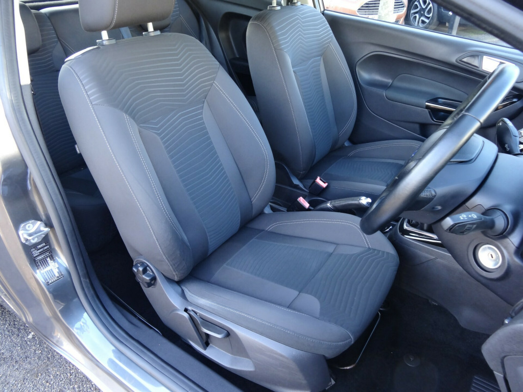 This 2017 Ford Fiesta 1.0T EcoBoost Zetec Hatchback has done 64220 miles with full history is powered by petrol, making it ULEZ compliant. It has 5 seats, including 15in Alloy Wheels, Body Colour Bumpers, Door Handles and Electrically-Operated and Heated Door Mirrors with Integrated Side Indicators. Furthermore, the car features Electrically-Operated Front Windows with One-Touch functionality, providing convenience and ease of use. This hatchback is perfect for those looking for a stylish and efficient vehicle, with plenty of room for passengers and cargo. Call our sales team on 01708-913354, friendly service & advice at all times., in alloy wheels - 5x2 spoke, bumpers - front and rear body colour, door handles - body colour, door mirrors - electrically-operated and heated - integrated side indicators - body colour housing, electrically-operated front windows with one touch, front lower grille insert - black, front upper grille - chrome finish surround, front upper grille insert - chrome bars, locking wheel nuts, quickclear heated windscreen, rear spoiler - body colour, tailgate handle - body colour, tinted glass, tyre repair kit, ambient lighting, centre console, courtesy light - front with map reading lights, courtesy light - overhead with theatre-style dimming, courtesy light - rear, footwell lights - driver and passenger, gearshift knob - leather, glovebox - illuminated, interior door lever - chrome finish, leather-trimmed handbrake, loadspace compartment light, loadspace floor carpet, manual air conditioning, mykey, pollen filter, removable package tray, seats - drivers 4-way manual adjustment, steering column - rake and reach adjustment, steering wheel - 3 spoke - leather trimmed, wipers - front variable intermittent, double locking, esp - electronic stability programme, emergency brake warning - automatic hazard warning lights, engine immobiliser - passive anti-theft system, first aid kit and warning traingle storage, ford easy fuel capless refuelling system with misfuel inhibitor, hill start assist, ips - intelligent protection system, remote central locking with two flip keys, tailgate wash-wipe, epas - electric power assisted steering, suspension - front stabiliser bar, trip computer, tyre pressure monitoring system, ford dab with ford sync, power point socket - 12 v, front fog lights - chrome bezel rings, halogen projector headlights with silver surrounds and led daytime running lights, headlights - courtesy delay, high-mounted rear brake light