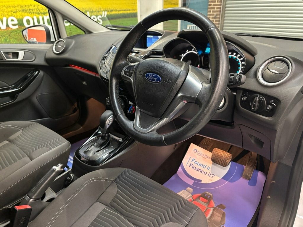Scott's of Leeds Car Sales are pleased to offer this Lovely low mileage FORD FIESTA 1.0T EcoBoost Zetec Hatchback 5 Door Petrol Automatic in White. The car is in good condition throughout, in the best colour combination and a great specification including DAB radio, Bluetooth, AUX and USB, Rear parking sensors, alloy wheels, isofix, CD player, Electric windows, and much much more. 1 Former Keeper supplied with an up to date service record including 8 services, an MOT until August 2026 and 2 Keys ready to drive away. £35 Road Tax and great MPG. As you can see this Automatic Fiesta ticks all the boxes. A guaranteed 12 Months MOT can be added for an extra £100. DISCLAIMER: The above specification is true and correct. Any other specification listed elsewhere can sometimes be incorrect. Please check with Sales Executive to clarify this if needed prior to purchase. 12V Power Socket - Front, 15in Alloy Wheels - 5x2 Spoke, ABS - Anti-lock Braking System, Air Conditioning - Manual, Airbags - Curtain, Airbags - Driver Side Knee, Airbags - Front Passenger, Airbags - Front Side, Airbags - Passenger Deactivation, Ambient Lighting, Bluetooth Hands-free Phone, Body Colour Exterior Mirrors, Bumpers - Front and Rear - Body Colour, Centre Console - with Trinket Tray - Two, Chrome Belt Line Finisher, Courtesy Light - Front with Map Reading , Courtesy Light - Overhead with Theatre-S, Courtesy Light - Rear, Door Handles - Body Colour, Door Mirrors - Electrically Operated and, Door Mirrors with Integrated Indicators, Double Locking, Drivers Airbag, EBA - Emergency Bra