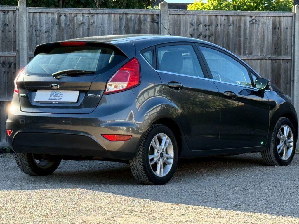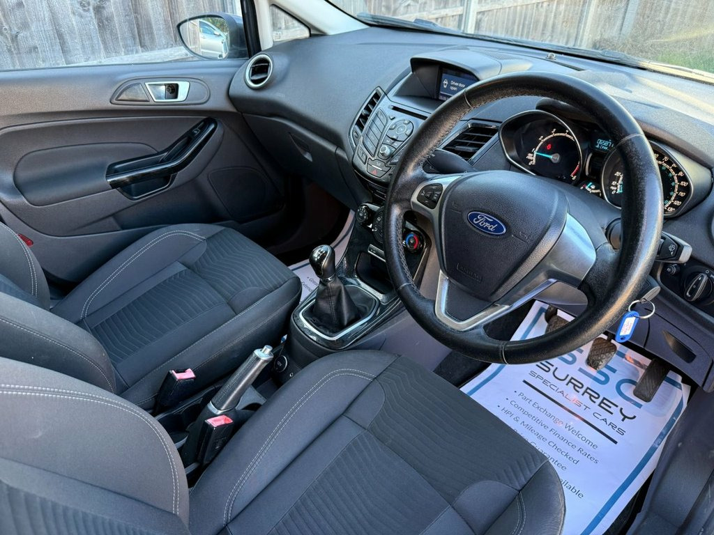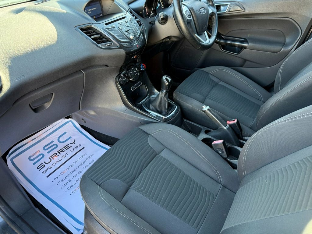 Surrey Specialist Cars are proud to present our lovely Ford Fiesta Zetec Turbo. This amazing car comes with Service History, finished in stunning metallic grey with grey contrast interior. The car has a MOT until February 2026 so it is ready to go. The 1L Petrol engine offers superb economy at over 65 MPG on combined cycle. Features Include Multifunction Steering Wheel, Trip Computer, Satellite Navigation, Stereo/Phone Control, FM/DAB Radio, CD Player, Bluetooth Audio, AUX Input, USB Input, Air Conditioning, Start/Stop System, 12V Charging Socket, 5 Speed Manual Gearbox, Fog Lights, Electric Windows, 15 Inch Alloy Wheels and two Remote Control Key to name a few. 15in Alloy Wheels - 5x2 Spoke, Ambient Lighting, Bumpers - Front and Rear Body Colour, Centre Console, Chrome Finish on Upper Door Line, Courtesy Light - Front with Map Reading , Courtesy Light - Rear, Door Handles - Body Colour, Door Mirrors - Electrically-operated and, Double Locking, EPAS - Electric Power Assisted Steering, ESP - Electronic Stability Programme, Electrically-Operated Front Windows with, Engine Immobiliser - Passive Anti-theft , First Aid Kit and Warning Traingle Stora, Footwell Lights - Driver and Passenger, Ford DAB with Ford SYNC, Ford Easy Fuel Capless Refuelling System, Ford Eco Mode - Driver Information Syste, Front Fog Lights - Chrome Bezel Rings, Front Upper Grille