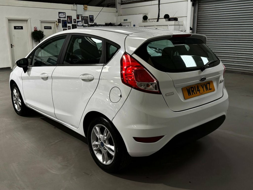 AWAITING PREPARATION... This 2014 Ford Fiesta Zetec boasts a remarkably clean history, having had only two owners since new. This popular hatchback is equipped with a 1.0 litre petrol engine and features manual air conditioning for your comfort. The Deflation Detection System is also included, offering an extra layer of safety. With an impressive fuel economy of up to 66 miles per gallon, this Fiesta Zetec is a very economical choice. Its low CO2 emissions further highlight its efficiency compared to similar vehicles. This well maintained example offers a great combination of practicality and cost effectiveness. 15in Alloy Wheels - 5x2 Spoke, ABS - Anti-lock Braking System, Aesthetic Lighting Package, Air Conditioning - Manual, Airbags - Curtain, Airbags - Driver Side Knee, Airbags - Front Passenger, Airbags - Head and Thorax, Airbags - Passenger Deactivation, Body Colour Exterior Mirrors, Brake Warning Lights - Automatic Flashin, Bumpers - Front and Rear - Body Colour, Centre Console - with Trinket Tray - Two, Chrome Belt Line Finisher, Courtesy Light - Overhead with Theatre-S, Courtesy Lights with Map Reading Lights, Daytime Running Lamps, DDS - Deflation Detection System, Door Handles - Body Colour, Door Mirrors - Electrically Operated and, Drivers Airbag, EBA - Emergency Brake Assist, EBD - Elec