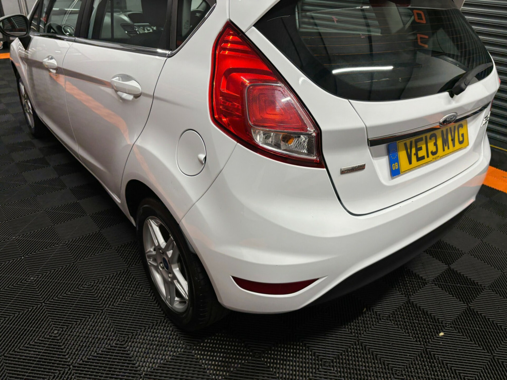 Ford Fiesta 1.0 E/B 100 Zetec 5dr Hatchback.. Registered - 31/07/2013 (13-reg).. 56,000 miles.. Full Ford main dealer service history (10 x service stamps).. Last serviced at 55,631 miles - July 2025.. MOT - August 2026 (no advisories).. Very clean MOT history.. Only 1 lady owner from new.. 2 x key fobs.. Grade 1 condition - absolutely immaculate for year.. 16 inch alloys with 2 new front tyres.. HPI clear with print-out.. Full detailed valet has been carried out.. Simply stunning inside and out.. Real credit to its only lady owner from new.. Power assisted steering.. Anti-braking system (ABS).. Alarm / central locking.. Electric windows.. Electric mirrors.. Air conditioning.. Bluetooth.. USB port.. AUX port.. Factory fitted single CD player.. Tyre inflation kit.. Mode lighting.. Onboard distance-to-empty computer.. Ideal first car with very low running costs.. Low road tax band - only £20 per year.. Low insurance group.. Great MPG.. Very scarce example with highly maintained service records.. Immaculate condition inside and out..