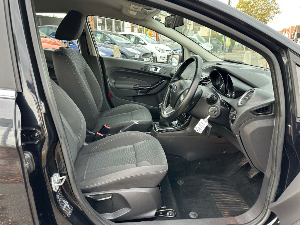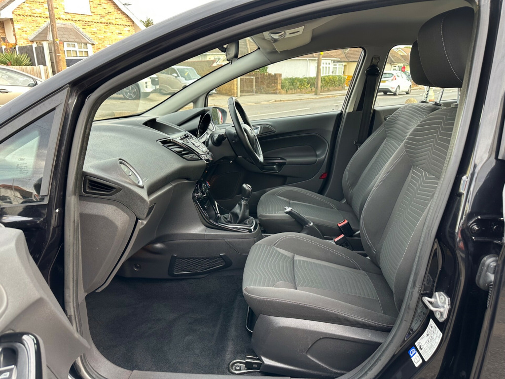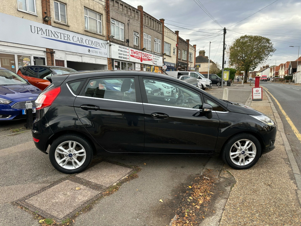 This 2015 Ford Fiesta 1.0T EcoBoost Zetec Hatchback. Powered by a petrol engine, this 5-door, 5-seater hatchback is equipped with a manual transmission and is ULEZ compliant, making it perfect for urban environments. Featuring 12V Power Socket, Bluetooth Hands-free Phone, Emergency Assistance, Ford AM-FM CD Audio System, and Ford DAB with Ford SYNC, this Fiesta offers modern convenience and connectivity. With its sleek design and practicality, this Fiesta is a great choice for anyone looking for a small, efficient, and stylish car. Call our showroom on 01708-913354, friendly service & advice at all times., v power socket - front, bluetooth hands-free phone, emergency assistance, ford am-fm cd audio system, ford dab with ford sync, ford sync, speakers - x6, usb and aux connection for external music devices, 15in alloy wheels - 5x2 spoke, body colour exterior mirrors, bumpers - front and rear - body colour, chrome belt line finisher, door handles - body colour, door mirrors - electrically operated and heated, door mirrors with integrated indicators, electric windows - front with one touch opening and closing, front lower grille insert - black, front upper grille - chrome finish surround, front upper grille insert - chrome bars, heated front windscreen, locking wheel nuts, rear spoiler - body colour, tailgate handle - body colour, tinted glass, tyre repair kit, abs - anti-lock braking system, airbags - curtain, airbags - driver side knee, airbags - front passenger, airbags - front side, airbags - passenger deactivation, double locking, drivers airbag, eba - emergency brake assist, ebd - electronic brakeforce distribution, esp - electronic stability programme, emergency brake warning - automatic hazard warning lights, engine immobiliser - passive anti-theft system, ford easy fuel capless refuelling system with misfuel inhibitor, hill start assist, ips - intelligent protection system, rear wash - wipe, remote central locking, seats - isofix mounting brackets for child seats, traction control - tc, air conditioning - manual, ambient lighting, centre console - with trinket tray - two cup holders, courtesy light - front with map reading lights, courtesy light - overhead with theatre-style dimming, courtesy light - rear, footwell lights - driver and passenger, front seat - passengers manual fore-aft adjustment, front seatback map pockets - driver and passenger, gear knob - leather, glovebox - illuminated, head restraints - 2-way adjustment, headliner - woven, interior door lever - chrome finish, leather-trimmed handbrake, loadspace compartment light, loadspace floor carpet, mykey, pollen filter, rake and reach steering adjustable, rear seats back - carpet, removable package tray, seat bolster - metal grey stitching, seats - 60-40 split folding back and fixed cushion, seats - drivers manual height and fore-aft adjustment, seats - front comfort style, steering wheel - 3 spoke - leather trimmed, steering wheel - multifunction, wipers - front variable intermittent, ecomode, epas - electric power assisted steering, gear shift indicator, suspension - front stabiliser bar, trip computer, tyre pressure monitoring system, voice control - audio, front fog lights - chrome bezel rings, headlights - courtesy delay, headlights - halogen projector with silver bezel, high-mounted rear brake light, led daytime running lights