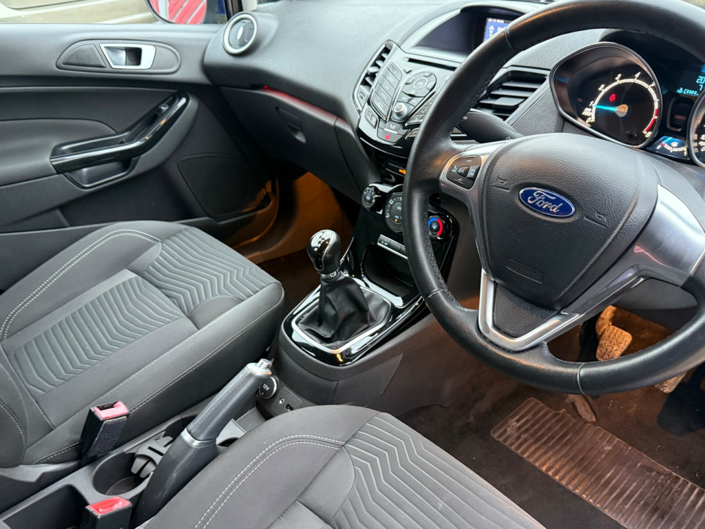 Sussex Vehicle Solutions Ltd are delighted to present this Ford Fiesta 1.0T EcoBoost Zetec. Across all our stock, we ensure servicing is up to date, that there is at least 6 months MOT remaining, and we provide warranty options of 3/6/12 months. As an AA Approved dealership, all vehicles come with 12 months AA breakdown cover free of charge. We can offer bespoke finance packages to suit all deal sizes and credit profiles, with rates starting from 8.9% APR. Sussex Vehicle Solutions is a family run business and we pride ourselves on giving excellent customer service in a pressure-free environment. If you have any questions, please do not hesitate to get in touch. in alloy wheels - 5x2 spoke, bumpers - front and rear body colour, door handles - body colour, door mirrors - electrically-operated and heated - integrated side indicators - body colour housing, electrically-operated front windows with one touch, front lower grille insert - black, front upper grille - chrome finish surround, front upper grille insert - chrome bars, locking wheel nuts, quickclear heated windscreen, rear spoiler - body colour, tailgate handle - body colour, tinted glass, tyre repair kit, ambient lighting, centre console, courtesy light - front with map reading lights, courtesy light - overhead with theatre-style dimming, courtesy light - rear, footwell lights - driver and passenger, gearshift knob - leather, glovebox - illuminated, interior door lever - chrome finish, leather-trimmed handbrake, loadspace compartment light, loadspace floor carpet, manual air conditioning, mykey, pollen filter, removable package tray, seats - drivers 4-way manual adjustment, steering column - rake and reach adjustment, steering wheel - 3 spoke - leather trimmed, wipers - front variable intermittent, double locking, esp - electronic stability programme, emergency brake warning - automatic hazard warning lights, engine immobiliser - passive anti-theft system, first aid kit and warning traingle storage, ford easy fuel capless refuelling system with misfuel inhibitor, hill start assist, ips - intelligent protection system, remote central locking with two flip keys, tailgate wash-wipe, epas - electric power assisted steering, suspension - front stabiliser bar, trip computer, tyre pressure monitoring system, ford dab with ford sync, power point socket - 12 v, front fog lights - chrome bezel rings, halogen projector headlights with silver surrounds and led daytime running lights, headlights - courtesy delay, high-mounted rear brake light