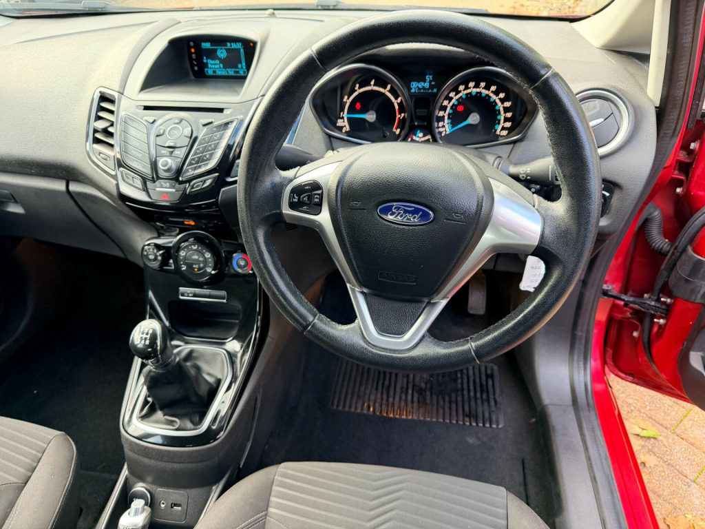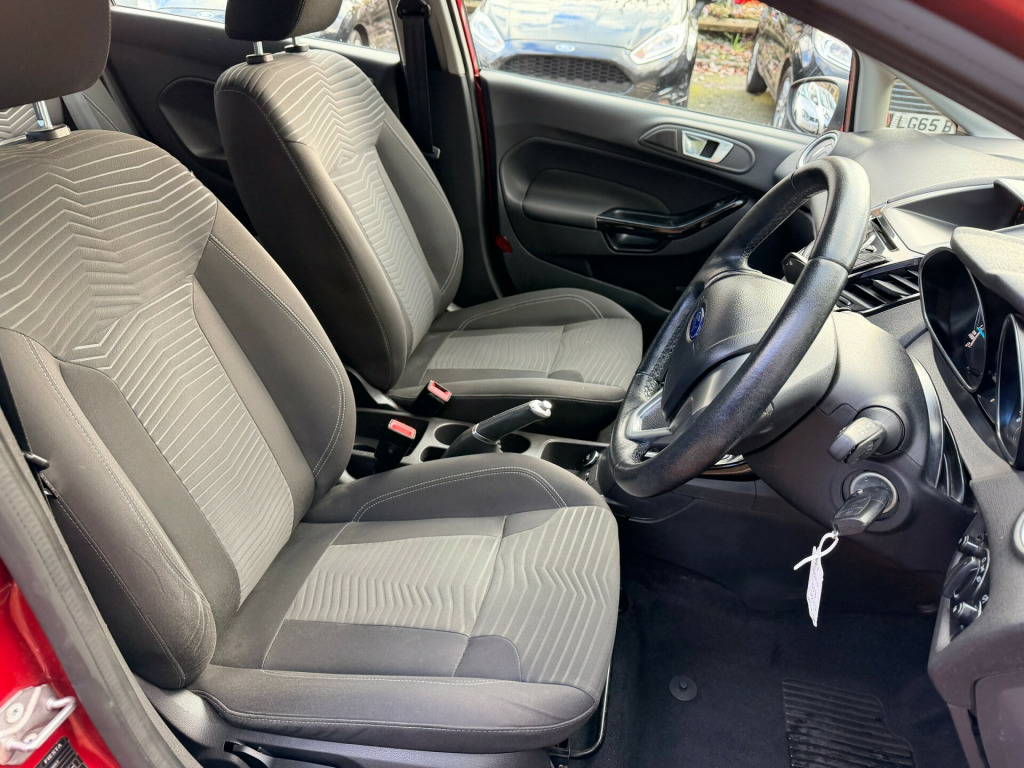 LOW ROAD TAX AT £20, LOW INSURANCE. MOT UNTIL SEPTEMBER 2026, 2 KEYS. HIGH SPEC,Air ConditioningBluetoothDABHeated Front ScreenMedia ConnectivityRadio CDThis 2015 Ford Fiesta 1.0T EcoBoost Zetec Hatchback with only 64238 miles is a reliable and efficient vehicle powered by a petrol engine. With an MOT that doesn't expire until 29/09/2026, this 5-door hatchback is perfect for city driving and comes with 5 comfortable seats, making it a great family car. Not only is it ULEZ compliant, but it also includes modern features like a 12V power socket in the front, Bluetooth hands-free phone connectivity, emergency assistance, a Ford AM-FM CD audio system, and a Ford DAB with Ford SYNC technology. Get behind the wheel of this Euro 6 (s/s) (100 ps) Fiesta and experience the convenience and style it has to offer. BY APPOINTMENT ONLY! v power socket - front, bluetooth hands-free phone, emergency assistance, ford am-fm cd audio system, ford dab with ford sync, ford sync, speakers - x6, usb and aux connection for external music devices, 15in alloy wheels - 5x2 spoke, body colour exterior mirrors, bumpers - front and rear - body colour, chrome belt line finisher, door handles - body colour, door mirrors - electrically operated and heated, door mirrors with integrated indicators, electric windows - front with one touch opening and closing, front lower grille insert - black, front upper grille - chrome finish surround, front upper grille insert - chrome bars, heated front windscreen, locking wheel nuts, rear spoiler - body colour, tailgate handle - body colour, tinted glass, tyre repair kit, abs - anti-lock braking system, airbags - curtain, airbags - driver side knee, airbags - front passenger, airbags - front side, airbags - passenger deactivation, double locking, drivers airbag, eba - emergency brake assist, ebd - electronic brakeforce distribution, esp - electronic stability programme, emergency brake warning - automatic hazard warning lights, engine immobiliser - passive anti-theft system, ford easy fuel capless refuelling system with misfuel inhibitor, hill start assist, ips - intelligent protection system, rear wash - wipe, remote central locking, seats - isofix mounting brackets for child seats, traction control - tc, air conditioning - manual, ambient lighting, centre console - with trinket tray - two cup holders, courtesy light - front with map reading lights, courtesy light - overhead with theatre-style dimming, courtesy light - rear, footwell lights - driver and passenger, front seat - passengers manual fore-aft adjustment, front seatback map pockets - driver and passenger, gear knob - leather, glovebox - illuminated, head restraints - 2-way adjustment, headliner - woven, interior door lever - chrome finish, leather-trimmed handbrake, loadspace compartment light, loadspace floor carpet, mykey, pollen filter, rake and reach steering adjustable, rear seats back - carpet, removable package tray, seat bolster - metal grey stitching, seats - 60-40 split folding back and fixed cushion, seats - drivers manual height and fore-aft adjustment, seats - front comfort style, steering wheel - 3 spoke - leather trimmed, steering wheel - multifunction, wipers - front variable intermittent, ecomode, epas - electric power assisted steering, gear shift indicator, suspension - front stabiliser bar, trip computer, tyre pressure monitoring system, voice control - audio, front fog lights - chrome bezel rings, headlights - courtesy delay, headlights - halogen projector with silver bezel, high-mounted rear brake light, led daytime running lights