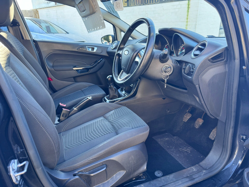 This 2015 Ford Fiesta 1.0T EcoBoost Zetec Hatchback with 93,456 miles on the clock is a reliable and efficient choice for anyone in the market for a used car. Powered by a petrol engine and equipped with a manual transmission, this vehicle is ULEZ compliant and has an MOT that expires on 23/09/2026. With 5 doors and 5 seats, it offers ample space for passengers and cargo. Some of its noteworthy features include a 12V power socket at the front, Bluetooth hands-free phone capability, emergency assistance, and a Ford AM-FM CD audio system with DAB and Ford SYNC technology. Whether you're driving around town or embarking on a road trip, this hatchback is sure to deliver a smooth and enjoyable ride. v power socket - front, bluetooth hands-free phone, emergency assistance, ford am-fm cd audio system, ford dab with ford sync, ford sync, speakers - x6, usb and aux connection for external music devices, 15in alloy wheels - 5x2 spoke, body colour exterior mirrors, bumpers - front and rear - body colour, chrome belt line finisher, door handles - body colour, door mirrors - electrically operated and heated, door mirrors with integrated indicators, electric windows - front with one touch opening and closing, front lower grille insert - black, front upper grille - chrome finish surround, front upper grille insert - chrome bars, heated front windscreen, locking wheel nuts, rear spoiler - body colour, tailgate handle - body colour, tinted glass, tyre repair kit, abs - anti-lock braking system, airbags - curtain, airbags - driver side knee, airbags - front passenger, airbags - front side, airbags - passenger deactivation, double locking, drivers airbag, eba - emergency brake assist, ebd - electronic brakeforce distribution, esp - electronic stability programme, emergency brake warning - automatic hazard warning lights, engine immobiliser - passive anti-theft system, ford easy fuel capless refuelling system with misfuel inhibitor, hill start assist, ips - intelligent protection system, rear wash - wipe, remote central locking, seats - isofix mounting brackets for child seats, traction control - tc, air conditioning - manual, ambient lighting, centre console - with trinket tray - two cup holders, courtesy light - front with map reading lights, courtesy light - overhead with theatre-style dimming, courtesy light - rear, footwell lights - driver and passenger, front seat - passengers manual fore-aft adjustment, front seatback map pockets - driver and passenger, gear knob - leather, glovebox - illuminated, head restraints - 2-way adjustment, headliner - woven, interior door lever - chrome finish, leather-trimmed handbrake, loadspace compartment light, loadspace floor carpet, mykey, pollen filter, rake and reach steering adjustable, rear seats back - carpet, removable package tray, seat bolster - metal grey stitching, seats - 60-40 split folding back and fixed cushion, seats - drivers manual height and fore-aft adjustment, seats - front comfort style, steering wheel - 3 spoke - leather trimmed, steering wheel - multifunction, wipers - front variable intermittent, ecomode, epas - electric power assisted steering, gear shift indicator, suspension - front stabiliser bar, trip computer, tyre pressure monitoring system, voice control - audio, front fog lights - chrome bezel rings, headlights - courtesy delay, headlights - halogen projector with silver bezel, high-mounted rear brake light, led daytime running lights
