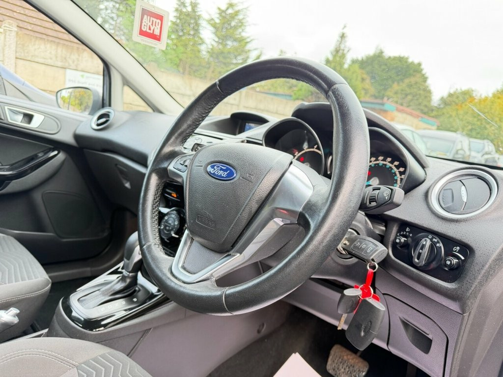 Here we have a Ford Fiesta 1.0 Petrol Automatic finished in Grey having done 92k miles from new with Full Service History including the last service done less than 50 miles ago and a long MOT until October 2026 with no advisories. Comes with full 3 month warranty and free 12 month AA breakdown cover. Only has 1 Previous Owner and a complete set of 3 Remote Keys. The interior and exterior of the car have been looked after very well, it starts and drives perfectly with no issues at all. Being the top of the range spec this vehicle benefits from Rear Parking Sensors, Bluetooth, Automatic Climate Control and Aux/USB capability. The car will be sold with extendable Warranty. We also offer Part Exchange / Delivery / Finance, HPI report available on request. Please call us on 0121 798 2352 for further enquiries. =============================================================================== Why not read our AutoTrader reviews to see what our customers think about their experience here and why they choose to buy from us? =============================================================================== Please contact our sales department for the latest finance offers on this vehicle. We have a dedicated team researching our used car prices daily to make sure we offer the best value cars in the market. =============================================================================== To arrange a personal viewing of this amazing car, or if you would like a tailored video to be e Magnetic, Active City Stop, Rear Privacy Glass, Spare Wheel - 14in Steel, Dress Up Kit - Full, 15in Alloy Wheels - 5x2 Spoke, Ambient Lighting, Bumpers - Front and Rear Body Colour, Centre Console, Chrome Finish on Upper Door Line, Courtesy Light - Front with Map Reading , Courtesy Light - Rear, Door Handles - Body Colour, Door Mirrors - Electrically-operated and, Double Locking, EPAS - Electric Power Assisted Steering, ESP - Electronic Stability Programme, Electrically-Operated Front Windows with, Engine Immobiliser - Passive Anti-theft , First Aid Kit and Warning Traingle Stora, Footwell Lights - Driver and Passenger, Ford DAB with Ford SYNC, Ford Easy Fuel Capless Refuelling System, Ford