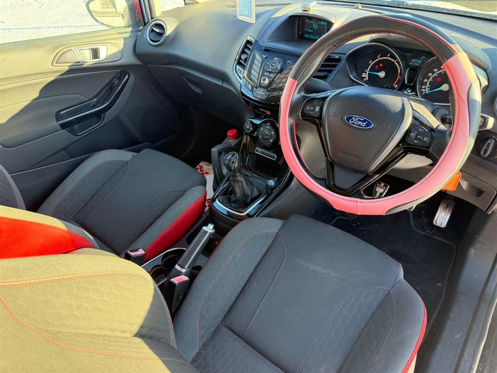Ford Fiesta 1.0T EcoBoost Zetec S Black Edition Euro 6 12M MOT (ADVISORY FREE) FRESH SERVICE (OIL AND OIL FILTER) 100k miles Cruise Control Rear Sensors Starts and Drives Retails for 3.5k Price reflected on vehicle- 12V Power Socket - Front,17in Alloy Wheels - 8-Spoke - Black,ABS - Anti-lock Braking System,AUX Connection,Air Conditioning - Manual,Airbags - Curtain,Airbags - Driver Side Knee,Airbags - Front Passenger,Airbags - Head and Thorax,Airbags - Passenger Deactivation,Armrest - Centre Console,Bluetooth Hands-free Phone,Brake Warning Lights - Automatic Flashing of Brake Lights Under Heavy Braking,Bumpers - Front and Rear - Body Colour,Bumpers - Sport Front and Rear,Centre Console - with Trinket Tray - 2x Cup Holders - Illuminated,Contrast Race Red - Upper and Lower Grille Surround and Front Bumper Aerofoil,Courtesy Light - Overhead with Theatre-Style Dimming,Courtesy Lights with Map Reading Lights,DDS - Deflation Detection System,Daytime Running Lamps,Door Handles - Body Colour,Door Mirrors - Contrast Race Red,Door Mirrors - Electrically Operated and Heated,Dress Up Kit - Full,Drivers Airbag,EBA - Emergency Brake Assist,EBD - Electronic Brakeforce Distribution,ECOmode,EPAS - Electric Power Assisted Steering,ESP - Electronic Stability Programme,Electric Windows - Front with One Touch Lowering Drivers,Emergency Assistance,Emergency Brake Warning - Automatic Hazard Warning Lights,Engine Immobiliser,Floor Mats - Red Stitching,Ford AM-FM CD Audio System,Ford Easy Fuel Capless Refuelling System with Misfuel Inhibitor,Ford SYNC,Front Fog Lights - Black Bezel Rings,Front Lower Grille Insert and Surround - Black,Front Seatback Map Pockets - Driver and Passenger,Front Upper Grille Insert - Black Mesh,Full Body Styling Kit,Gear Knob - Leather,Gear Knob - Leather with Red Stitching,Gearshift Indicator Light,Gearshift Knob - Leather-Trimmed with Chrome Finish Bezel,Glovebox - Illuminated,Handbrake - Leather Red Stitching,Head Restraints - 2-way Adjustment,Head Restraints - Rear 2-Way Adjustment,Headlights - Follow Me Home,Headlights - Halogen Projector with Silver Bezel,Headliner - Woven,Heated Front Windscreen,High-Mounted Rear Brake Light,Hill Start Assist,IPS - Intelligent Protection System,Interior Door Lever - Chrome Finish,LED Ambient Courtesy Lighting,Large Rear Spoiler,Loadspace Compartment Light,Loadspace Floor Carpet,Locking Wheel Nuts,Matrix Display,MyKey,Pedals - Sports,Perimeter Anti Theft Alarm,Pollen Filter,Rake and Reach Steering Adjustable,Rear Courtesy Lights,Remote Central Locking,Removable Package Tray,Roof - Contrast Race Red,Seats - 60-40 Split Folding Back and Fixed Cushion,Seats - Drivers 4-Way Adjustment,Seats - Drivers Lumbar Support,Seats - Front Sports,Seats - ISOFIX Mounting Brackets for Child Seats,Side Skirts,Speakers - x6,Sports Suspension,Steering Wheel - Leather with Red Stitching,Steering Wheel - Multifunction,Stowage Pockets - Driver and Front Passenger Seatbacks,Tailgate Handle - Body Colour,Traction Control - TC,Trip Computer,Tyre Inflator Kit,Tyre Pressure Monitoring System,USB Connection,Voice Control - Audio,Cruise Control,Ford DAB with Ford SYNC,Active City Stop,Rear Privacy Glass,Spare Wheel - 14in Steel