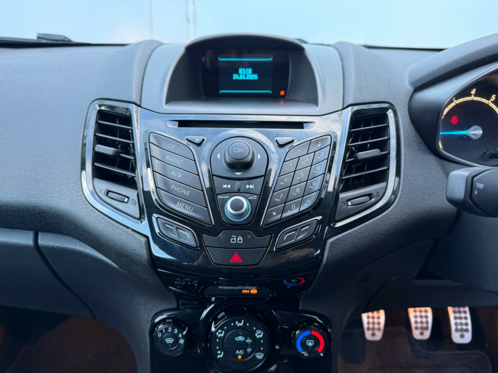 This 2014 Ford Fiesta Zetec S is a remarkable find, boasting exceptionally low mileage for its age, having covered just 50,212 miles. This popular hatchback is equipped with a responsive 1.0 litre petrol engine and features a manual air conditioning system to keep you comfortable on every journey. For your convenience and safety, it also includes Bluetooth handsfree phone connectivity, allowing you to make calls and stream audio without taking your hands off the wheel.12 months warranty £299The Fiesta Zetec S offers an impressive fuel economy of up to 66 miles per gallon, making it an economical choice for daily driving. Its low CO2 emissions further contribute to its cost effectiveness and environmental consideration. When it comes to performance, this model accelerates from 0 to 62 miles per hour in a brisk 9.4 seconds, demonstrating a lively and engaging driving experience that sets it apart from many other vehicles in its class.. 12V Power Socket - Front, 16in Alloy Wheels - 12 Spoke, ABS - Anti-lock Braking System, Air Conditioning - Manual, Airbags - Curtain, Airbags - Driver Side Knee, Airbags - Front Passenger, Airbags - Head and Thorax, Airbags - Passenger Deactivation, Armrest - Centre Console, Bluetooth Hands-free Phone, Brake Warning Lights - Automatic Flashing of Brake Lights Under Heavy Braking, Bumpers - Sport Front and Rear, Centre Console - with Trinket Tray - Two Cup Holders, Courtesy Light - Overhead with Theatre-Style Dimming, Courtesy Lights with Map Reading Lights, Door Handles - Body Colour, Door Mirrors - Electrically Operated and Heated, Dress Up Kit - Full, Drivers Airbag, EBA - Emergency Brake Assist, EBD - Electronic Brakeforce Distribution, ECOmode, EPAS - Electric Power Assisted Steering, ESP - Electronic Stability Programme, Electric Windows - Front with One Touch Lowering Drivers, Emergency Assistance, Emergency Brake Warning - Automatic Hazard Warning Lights, Ford AM-FM CD Audio System, Ford Easy Fuel Capless Refuelling System with Misfuel Inhibitor, Ford SYNC, Front Fog Lights - Black Bezel Rings, Front Lower Grille Insert and Surround - Black, Front Seatback Map Pockets - Driver and Passenger, Front Upper Grille Insert - Black Mesh, Gear Knob - Leather, Gearshift Indicator Light, Gearshift Knob - Leather-Trimmed with Chrome Finish Bezel, Glovebox - Illuminated, Handbrake Release Knob - Chrome, Head Restraints - 2-way Adjustment, Head Restraints - Rear 2-Way Adjustment, Headlights - Courtesy Delay, Headlights - Follow Me Home, Headlights - Halogen Projector with Silver Bezel, Headliner - Woven, Heated Front Windscreen, High-Mounted Rear Brake Light, Hill Start Assist, IPS - Intelligent Protection System, Interior Door Lever - Chrome Finish, LED Ambient Courtesy Lighting, Large Rear Spoiler, Leather-Trimmed Handbrake, Loadspace Compartment Light, Loadspace Floor Carpet, Locking Wheel Nuts, Matrix Display, MyKey, Passenger Airbag Deactivation Indicator, Passengers seat manual 2-way adjustment, Pedal covers - Alloy cappings, Pedals - Sports, Perimeter Anti Theft Alarm, Pollen Filter, Rake and Reach Steering Adjustable, Rear Courtesy Lights, Rear Seats Back - Carpet, Rear Spoiler - Sports Style - Body Colour, Remote Central Locking, Removable Package Tray, Seats - 60-40 Split Folding Back and Fixed Cushion, Seats - Drivers 4-Way Adjustment, Seats - Drivers Lumbar Support, Seats - Front Sports, Seats - ISOFIX Mounting Brackets for Child Seats, Second Remote Ignition Key, Side Skirts, Speakers - x6, Sports Suspension, Steering Wheel - 3-Spoke - Leather Trimmed with Bezel, Steering Wheel - Multifunction, Stowage Pockets - Driver and Front Passenger Seatbacks, Suspension - Front Stabiliser Bar, Tailgate Handle - Body Colour, Trip Computer, Tyre Inflator Kit, USB and AUX Connection for External Music Devices, Voice Control - Audio. Full service history