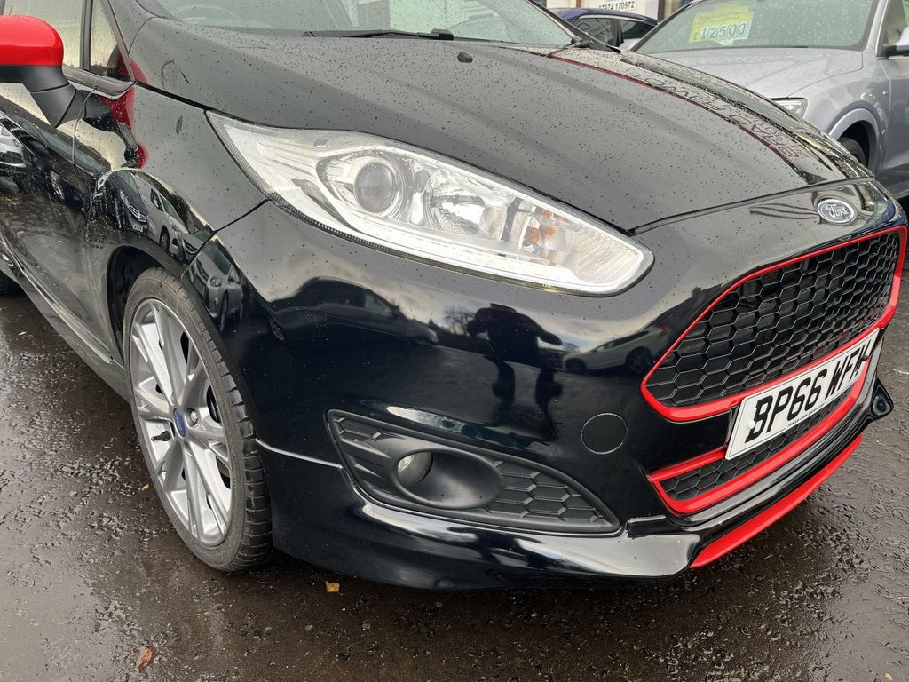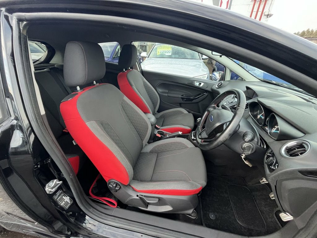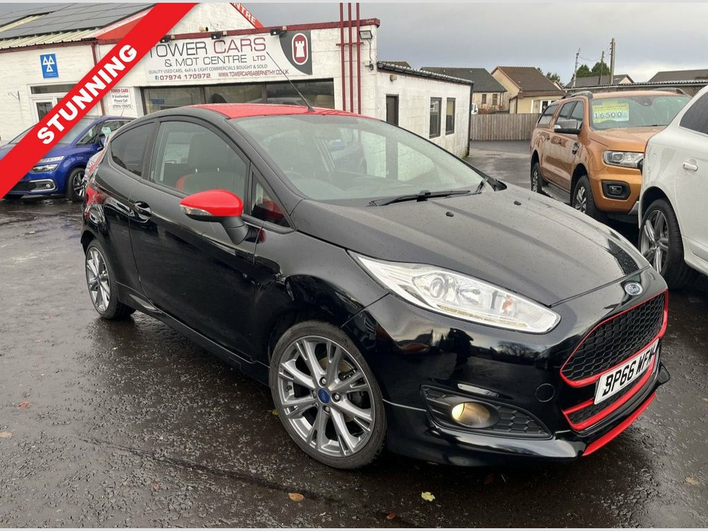 Stunning Zetec S Black edition in Metallic Shadow Black with Race Red roof and mirror caps,Great spec and economy with average 62 Mpg and only £20 road tax,Just been serviced by ourselves including new front brake discs and pads fitted,Comes with 2 remote keys and Mot till 29.08.2026,P/X and finance available,This 2016 Ford Fiesta Zetec S Black Edition is a fantastic example with an MOT valid until August 2026, offering peace of mind for the coming years. Powered by a 1.0L petrol engine, this Euro 6 compliant model combines efficiency with performance. It comes with a 3 month warranty for added reassurance. Notable features include Ford Navigation with DAB and Ford SYNC,rear privacy glass for a more secluded feel, manual air conditioning to keep you comfortable in all weather, and Bluetooth hands free phone connectivity for safe and easy communication on the go. Ultimate - Lux Soft Cloth - Charcoal Bla, Ford Navigation with DAB and Ford SYNC, Shadow Black, Spare Wheel - 14in Steel, Rear Privacy Glass, 12V Power Socket - Front, 17in Alloy Wheels - 8-Spoke, ABS - Anti-lock Braking System, Air Conditioning - Manual, Airbags - Curtain, Airbags - Driver Side Knee, Airbags - Front Passenger, Airbags - Front Side, Airbags - Passenger Deactivation, Armrest - Centre Console, Bluetooth Hands-free Phone, Body Colour Exterior Mirrors, Bumpers - Front and Rear - Body Colour, Bumpers - Sport Front and Rear, Centre Console - with Trinket Tray - 2x , Courtesy Light - Front with Map Reading , Courtesy Light - Overhead with Theatre-S, Courtesy Light - Rear, Door Hand