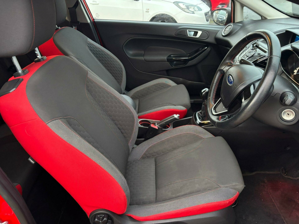 6 Service Stamps In The Book - Last Serviced Decmeber 2025 - Will Come With 12mth Mot On PurchaseThis 2015 Ford Fiesta Zetec S Red Edition boasts exceptionally low mileage for its age, having covered just 55,000 miles. This particular model is a T Zetec S Red Edition, powered by an efficient 1.0L petrol engine and meeting Euro 6 emission standards. It comes with a clear vehicle history check, offering peace of mind. Inside, you'll find convenient features such as manual air conditioning and Bluetooth hands free phone connectivity.The Ford Fiesta Zetec S Red Edition offers a compelling blend of performance and economy. Its impressive fuel economy of 63 mpg is a significant advantage, meaning fewer trips to the petrol station. Furthermore, its low CO2 emissions contribute to a more environmentally friendly drive. For those who appreciate a responsive drive, it accelerates from 0 to 62 mph in a brisk 9.0 seconds, demonstrating its spirited performance compared to other vehicles in its class.. 12V Power Socket - Front, 17in Alloy Wheels - 8-Spoke - Black, ABS - Anti-lock Braking System, AUX Connection, Air Conditioning - Manual, Airbags - Curtain, Airbags - Driver Side Knee, Airbags - Front Passenger, Airbags - Head and Thorax, Airbags - Passenger Deactivation, Armrest - Centre Console, Bluetooth Hands-free Phone, Brake Warning Lights - Automatic Flashing of Brake Lights Under Heavy Braking, Bumpers - Front and Rear - Body Colour, Bumpers - Sport Front and Rear, Centre Console - with Trinket Tray - 2x Cup Holders - Illuminated, Courtesy Light - Overhead with Theatre-Style Dimming, Courtesy Lights with Map Reading Lights, DDS - Deflation Detection System, Daytime Running Lamps, Door Handles - Body Colour, Door Mirrors - Contrast Panther Black, Door Mirrors - Electrically Operated and Heated, Dress Up Kit - Full, Drivers Airbag, EBA - Emergency Brake Assist, EBD - Electronic Brakeforce Distribution, ECOmode, EPAS - Electric Power Assisted Steering, ESP - Electronic Stability Programme, Electric Windows - Front with One Touch Lowering Drivers, Emergency Assistance, Emergency Brake Warning - Automatic Hazard Warning Lights, Engine Immobiliser, Floor Mats - Red Stitching, Ford AM-FM CD Audio System, Ford Easy Fuel Capless Refuelling System with Misfuel Inhibitor, Ford SYNC, Front Fog Lights - Black Bezel Rings, Front Lower Grille Insert and Surround - Black, Front Seatback Map Pockets - Driver and Passenger, Front Upper Grille Insert - Black Mesh, Full Body Styling Kit, Gear Knob - Leather, Gear Knob - Leather with Red Stitching, Gearshift Indicator Light, Gearshift Knob - Leather-Trimmed with Chrome Finish Bezel, Glovebox - Illuminated, Handbrake - Leather Red Stitching, Head Restraints - 2-way Adjustment, Head Restraints - Rear 2-Way Adjustment, Headlights - Follow Me Home, Headlights - Halogen Projector with Silver Bezel, Headliner - Woven, Heated Front Windscreen, High-Mounted Rear Brake Light, Hill Start Assist, IPS - Intelligent Protection System, Interior Door Lever - Chrome Finish, LED Ambient Courtesy Lighting, Large Rear Spoiler, Loadspace Compartment Light, Loadspace Floor Carpet, Locking Wheel Nuts, Matrix Display, MyKey, Pedals - Sports, Perimeter Anti Theft Alarm, Pollen Filter, Rake and Reach Steering Adjustable, Rear Courtesy Lights, Remote Central Locking, Removable Package Tray, Roof - Contrast Panther Black, Seats - 60-40 Split Folding Back and Fixed Cushion, Seats - Drivers 4-Way Adjustment, Seats - Drivers Lumbar Support, Seats - Front Sports, Seats - ISOFIX Mounting Brackets for Child Seats, Side Skirts, Speakers - x6, Sports Suspension, Steering Wheel - Leather with Red Stitching, Steering Wheel - Multifunction, Stowage Pockets - Driver and Front Passenger Seatbacks, Tailgate Handle - Body Colour, Traction Control - TC, Trip Computer, Tyre Inflator Kit, Tyre Pressure Monitoring System, USB Connection, Voice Control - Audio.