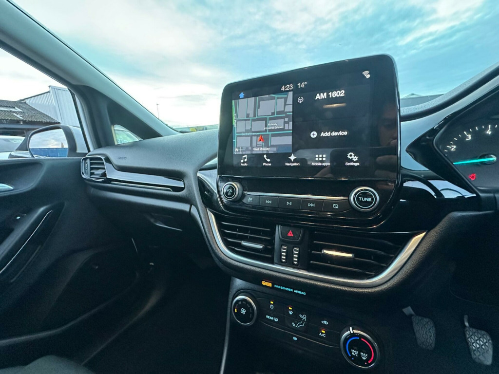 This 2017 Ford Fiesta Ti-VCT Zetec presents a clear vehicle history, offering peace of mind for its next owner. This popular hatchback is equipped with a 1.1L Petrol Engine and meets Euro 6 emission standards. Inside, you'll find a Ford DAB Radio with Ford SYNC3, compatible with both Apple CarPlay and Android Auto, alongside manual air conditioning. The Zetec trim also benefits from automatic headlights, which are part of the NCAP Pack, contributing to enhanced safety. While the service history is partial, the vehicle history check is clear.This Ford Fiesta stands out with its impressive fuel economy, achieving a highlight of 64 miles per gallon, indicating it is more economical than many similar vehicles. Furthermore, its low insurance group and low CO2 emissions also highlight its cost effectiveness and environmental consideration compared to other cars in its class. in alloy wheels - 8 spoke, 3-spoke leather trimmed steering wheel with audio controls, abs - anti-lock braking system, air conditioning - manual, airbags - driver, airbags - front passenger, airbags - front and rear side curtain, airbags - side curtain, airbags - side impact, body coloured electrically operated door mirrors with integrated side indicators, centre console with two cupholders and 12v power point, chrome belt line finisher, chrome upper grille, courtesy light - front map light and rear - overhead led, door handles - body colour, door lever - chrome finish, ebd - electronic brakeforce distribution, electrically-operated front windows with one touch drivers, electronic stability control - esc with traction control and emergency brake assist - eba, electronic stability programme - esp with hill start assist, ford dab radio with ford sync3 - apple car play and android auto, ford easy fuel system, front bumper - body colour, front fog lamps with cornering lights, gearshift knob - leather-trimmed, glovebox - illuminated, headlights - automatic on-off, headlights - halogen projector with black bezel and dedicated led daytime running lights, headliner - woven, ips - intelligent protection system, leather-trimmed handbrake, manual drivers seat height adjustment, mykey, ncap pack, overhead console - sunglasses holder, power steering, quickclear heated windscreen, rear bumper - body coloured upper and self colour lower, rear fog lamps, rear seat - 60-40 split back and cushion, rear spoiler - body colour, remote central locking and engine immobiliser, seats - front comfort style, steering column - rake and reach adjustment, tailgate wash-wipe, thatcham alarm, trip computer, tyre pressure monitoring system - tpms, tyre repair kit, warning triangle storage, wipers - standard with 6 speed interval settings