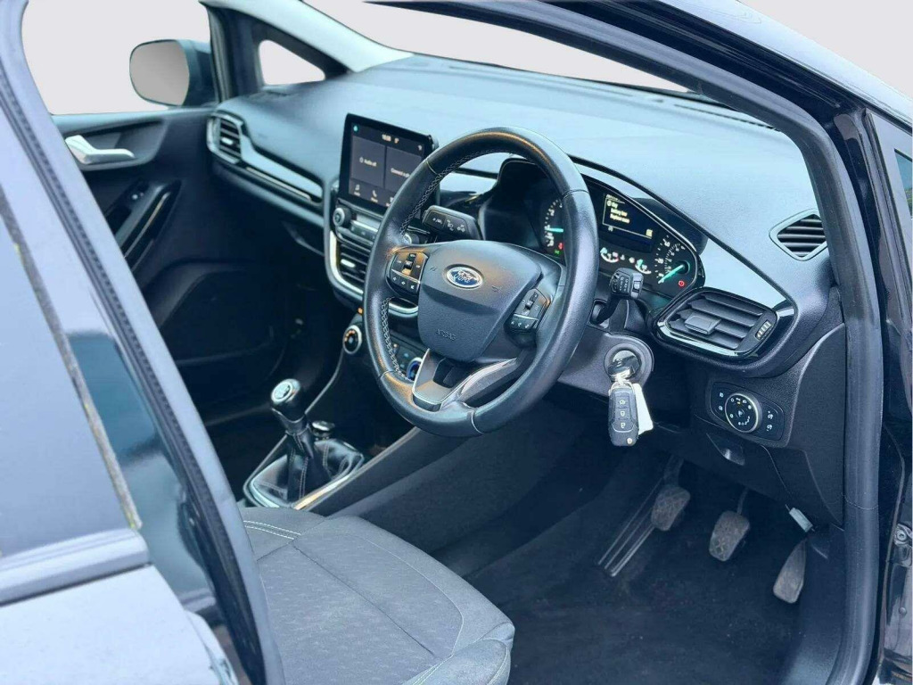 Benefit from a 12 month warranty and 12 months MOT provided on purchase for peace of mind with this 2019 Ford Fiesta Ti-VCT Zetec. This Euro 6 compliant 1.1L petrol model offers a partial service history, with its last service recorded at 78111 miles on 29 January 2026. Inside, you will find a Ford DAB Radio with Ford SYNC3, compatible with both Apple CarPlay and Android Auto, alongside manual air conditioning. The Zetec trim also includes a NCAP Pack with automatic headlights, ensuring they switch on automatically when needed.This Ford Fiesta stands out with its low insurance group, making it an economical choice for many drivers. Furthermore, its low CO2 emissions highlight its efficiency, indicating it is a more environmentally friendly option compared to similar vehicles. This combination of practical features and cost saving benefits makes this Fiesta a compelling proposition. in alloy wheels - 8 spoke, 3-spoke leather trimmed steering wheel with audio controls, abs - anti-lock braking system, air conditioning - manual, airbags - driver, airbags - front passenger, airbags - front and rear side curtain, airbags - side curtain, airbags - side impact, body coloured electrically operated door mirrors with integrated side indicators, centre console with two cupholders and 12v power point, chrome belt line finisher, chrome upper grille, courtesy light - front map light and rear - overhead led, door handles - body colour, door lever - chrome finish, ebd - electronic brakeforce distribution, electrically-operated front windows with one touch drivers, electronic stability control - esc with traction control and emergency brake assist - eba, electronic stability programme - esp with hill start assist, ford dab radio with ford sync3 - apple car play and android auto, ford easy fuel system, front bumper - body colour, front fog lamps with cornering lights, gearshift knob - leather-trimmed, glovebox - illuminated, headlights - automatic on-off, headlights - halogen projector with black bezel and dedicated led daytime running lights, headliner - woven, ips - intelligent protection system, leather-trimmed handbrake, manual drivers seat height adjustment, mykey, ncap pack, overhead console - sunglasses holder, power steering, quickclear heated windscreen, rear bumper - body coloured upper and self colour lower, rear fog lamps, rear seat - 60-40 split back and cushion, rear spoiler - body colour, remote central locking and engine immobiliser, seats - front comfort style, steering column - rake and reach adjustment, tailgate wash-wipe, thatcham alarm, trip computer, tyre pressure monitoring system - tpms, tyre repair kit, warning triangle storage, wipers - standard with 6 speed interval settings