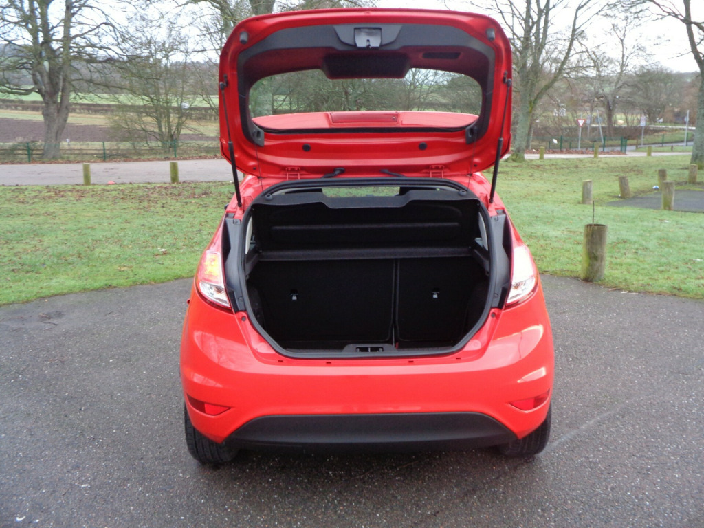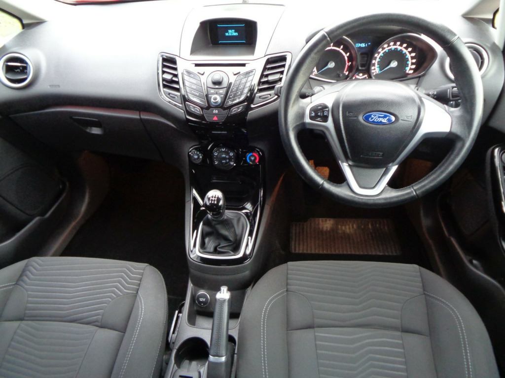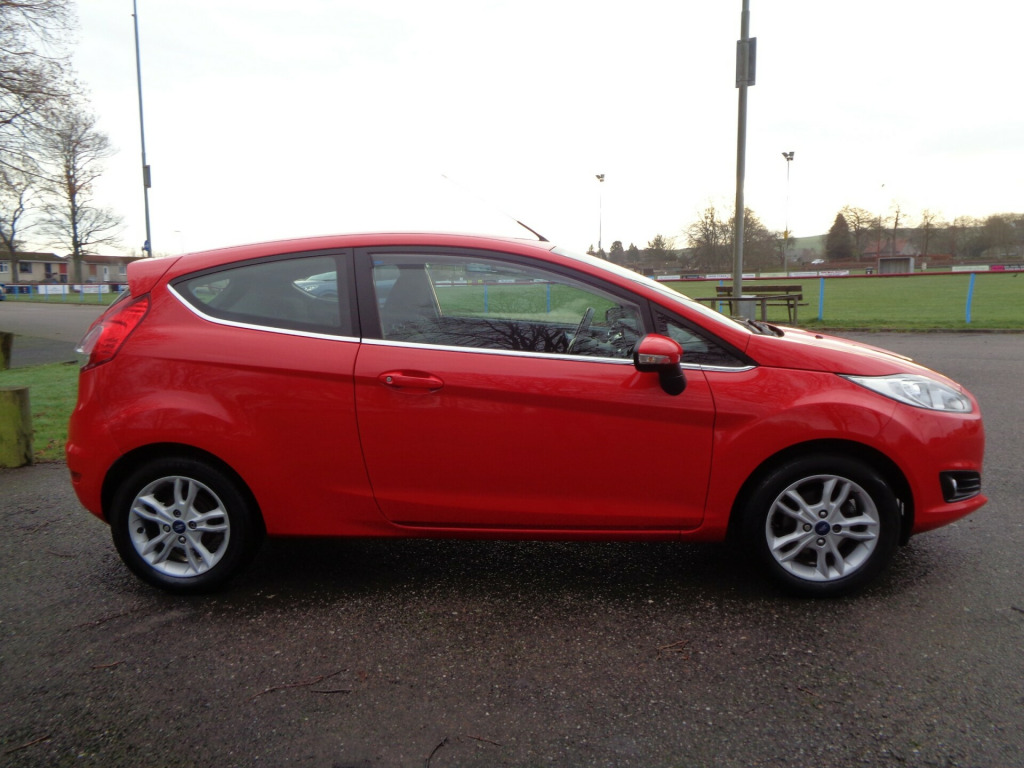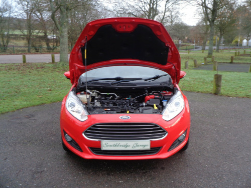 ONLY £35 for road tax on this Race Red Fiesta Zetec and ONLY 34k miles too. This is the best engine and spec, heated windscreen as standard! Give us a call on 01334 656746 if you would like to come and see it or, if you are not already on it, click the link through to our website for many more photos. Finance available, click the finance section on our website to request a quote or just give us a call. Part exchange welcome. Southbridge Garage, Cupar, KY15 5HY. r conditioning, bluetooth connection, usb/ipod interface, adjustable steering column, power steering, abs, isofix child seat anchor points, immobiliser, remote central locking, electric front windows, electric mirrors, windscreen heating, auxiliary input socket, oem sound system, radio/cd, height adjustable drivers seat, folding rear seats, rear headrests, alloy wheels, body coloured bumpers, front fog lights, rear wash/wipe, solid paint, tyre repair kit, lez compliant
