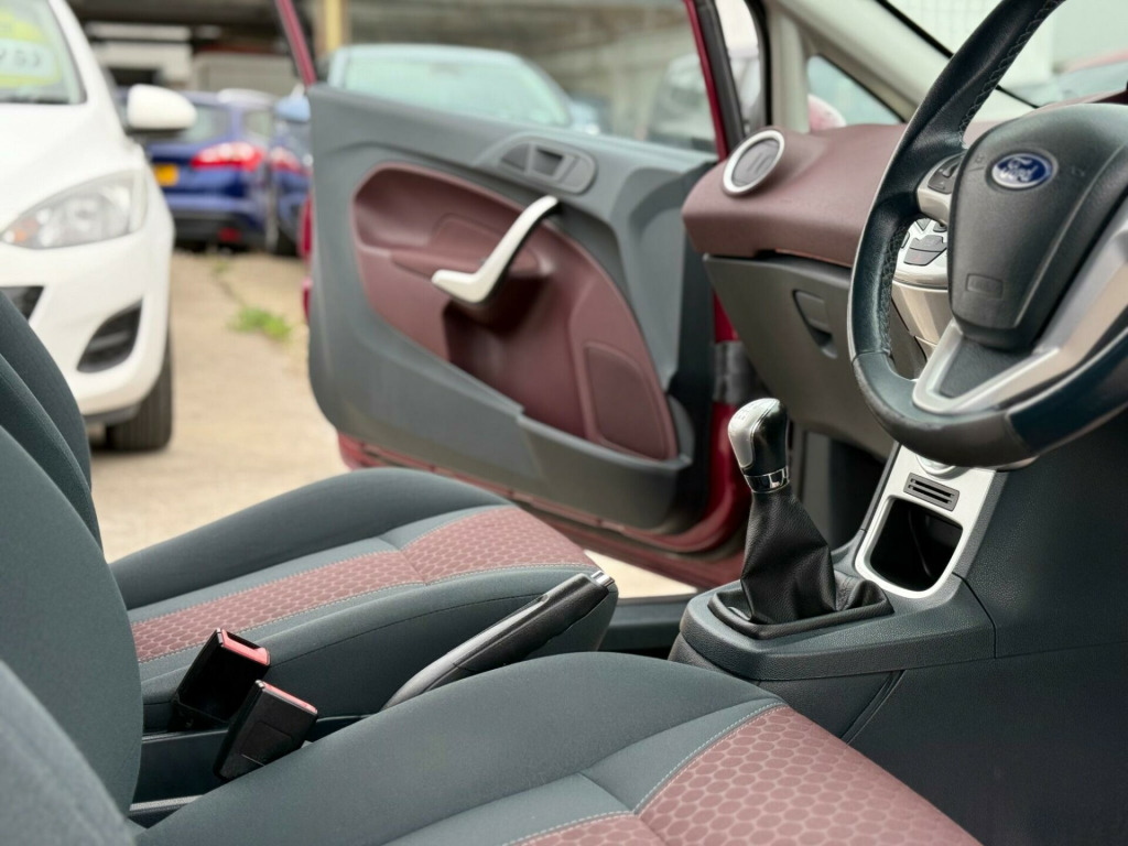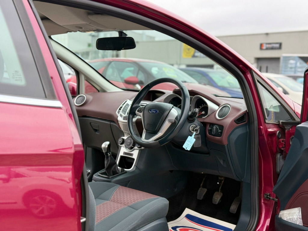 This 2009 Ford Fiesta Zetec presents a compelling proposition with its MOT valid until September 2026 and a clear vehicle history check, offering peace of mind for its next owner. This popular hatchback is equipped with a 1.25 litre petrol engine and has been owned by only two previous keepers. While it has a partial service history, the clear vehicle history check confirms its sound background.The Ford Fiesta Zetec is renowned for its affordability and practicality, and this model is no exception. It benefits from a low insurance group, making it an economical choice for many drivers. Furthermore, its impressive fuel economy of 50 miles per gallon and low CO2 emissions highlight its efficiency, setting it apart from many other vehicles in its class and contributing to lower running costs. u. hands-free tech./vo. con./usb port, rear centre headrestraints, bluetooth hands-free tech./voice control, alloy wheels - 16in 7 spoke zetec, metallic paint, metallic paint - hot magenta, bluetooth handsfree vc and usb and mobile navi 2, esp with traction assist and eba, smokers pack, city pack, 16in - alloy wheels, 2 front speakers, air conditioning, airbag - driver, airbag - driver seat head thorax, airbag - front passenger, airbag - front side, airbag - knee driver, anti-lock brakes (abs) and emergency brake distribution (ebd), body colour rear spoiler, bumpers - body colour, centre rear seat belt, driver seat height adjust, electronic brake force distribution (ebd), front fog lights, head restraints front/rear, heated rear screen, immobiliser, leather gearknob, leather steering wheel, map reading lights/aesthetic lighting, power - assisted steering, power heated mirrors, quickclear heated windscreen, quickclear heated windscreen, radio/cd, mp3 compatible with 2-line display and aux in, reach and rake steering wheel, rear wash/wipe, remote control for audio, remote double locking, split rear seats, third brake light, trip computer, tyre mobility kit, upholstery cloth, windows - power front one-shot