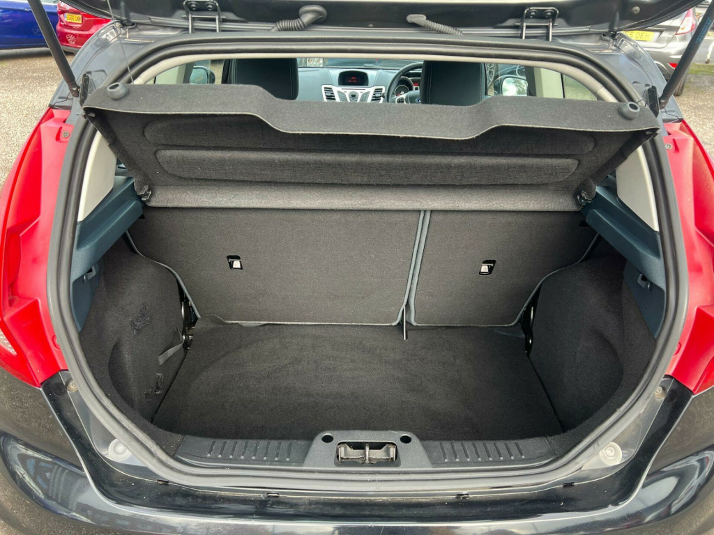 This 2012 Ford Fiesta Zetec presents an exceptional opportunity with its remarkably low mileage of just 57,000 miles. This particular Fiesta is powered by an efficient 1.25 litre petrol engine and benefits from a full service history, offering peace of mind for its next owner. It also features attractive metallic paint and a suite of convenient notable features including Bluetooth hands free technology, voice control, and a USB port, making every journey more enjoyable and connected.The Ford Fiesta Zetec is renowned for its practicality and enjoyable driving experience, and this example further enhances its appeal. Its low insurance group rating means that running costs are kept to a minimum, making it an economical choice for many drivers. Combined with its comprehensive service history and very low mileage, this Fiesta stands out as a well maintained and cared for vehicle, offering excellent value and reliability.. 15in Alloy Wheels (195/50 Tyres) with Locking Wheel Nuts, 60/40 Split Folding Back and Fixed Cushion, Accessory Power Socket (12V), Anti-Lock Brakes, Emergency Brake Assist (EBA), Body Coloured Bumpers, Body Coloured Rear Spoiler, Centre Console, Centre High - Mounted Rear Brake Light, Centre Rear Seat Belt, Drivers Airbag, Drivers Knee Airbag, Electric Power Assisted Steering (EPAS), Electrically - Operated Front Windows with One - Touch Lowering/Closing on Drivers Side, Electrically - Operated/Heated Door Mirrors with Integrated Side Indicators, Electronic Brake - Force Distribution (EBD), Electronic Stability Programme (ESP), Four Front Speakers, Front Fog Lights with Chrome Bezel Rings, Front Side Airbag (Head and Thorax), Front and Rear Head Restraints, ISOFIX Mounting Brackets for Child Seat (Rear Outer Seats Only), Immobiliser, Leather Gear Knob, Leather Trimmed 3 - Spoke Steering Wheel, Manual 4 - Way Driver Seat Adjust, Manual Air-Conditioning, Passengers Airbag, QuickClear Heated Windscreen, Radio/CD, MP3 Compatible, Multifunctional 2 - Line Display, AUX Connection, Rake and Reach Adjustable Steering Column, Remote Audio Controls, Remote Central Locking with Two Keys, Seat Buckle Pre-Tensioners on Front Seat Belts, Traction Assist, Trip Computer, Two Cup Holders, Tyre Mobility Kit, Upholstery Cloth, Blu. Hands-Free Tech./Vo. Con./USB Port, Metallic Paint. Full service history