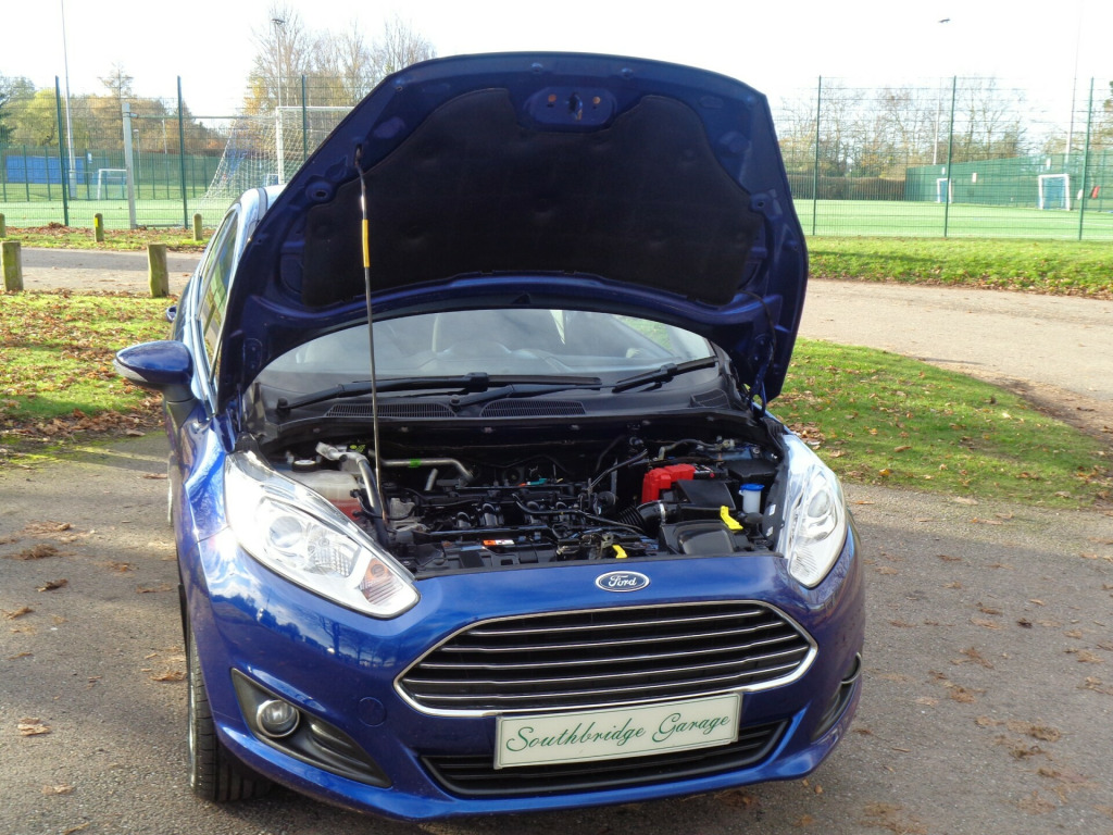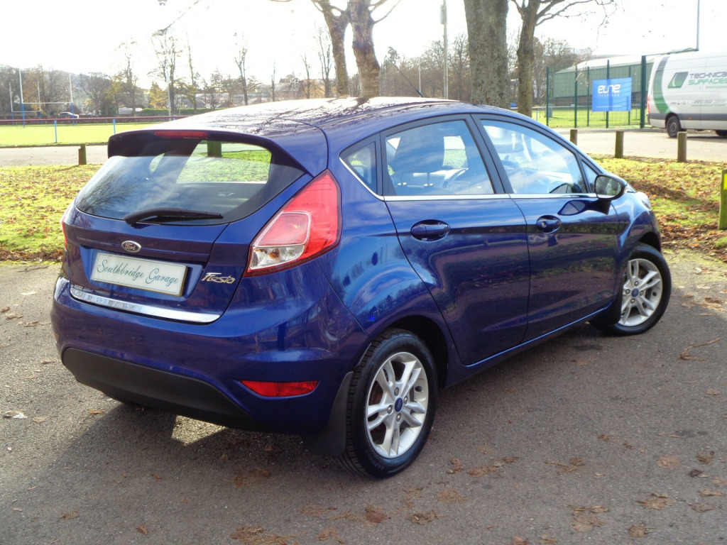 ONLY 23k miles on this lovely Fiesta Zetec and ONLY £35 for road tax too! These don't hang about long so get in early! Give us a call on 01334 656746 if you would like to come and see it or, if you are not already on it, click the link through to our website for many more photos. Finance available, click the finance section on our website to request a quote or just give us a call. Part exchange welcome. Southbridge Garage, Cupar, KY15 5HY. r conditioning, bluetooth connection, usb/ipod interface, adjustable steering column, power steering, abs, child locks, isofix child seat anchor points, quick-clear screen, immobiliser, remote central locking, electric front windows, electric mirrors, windscreen heating, auxiliary input socket, oem sound system, radio/cd, height adjustable drivers seat, folding rear seats, rear headrests, alloy wheels, body coloured bumpers, front fog lights, metallic paintwork, rear wash/wipe, tyre repair kit, lez compliant