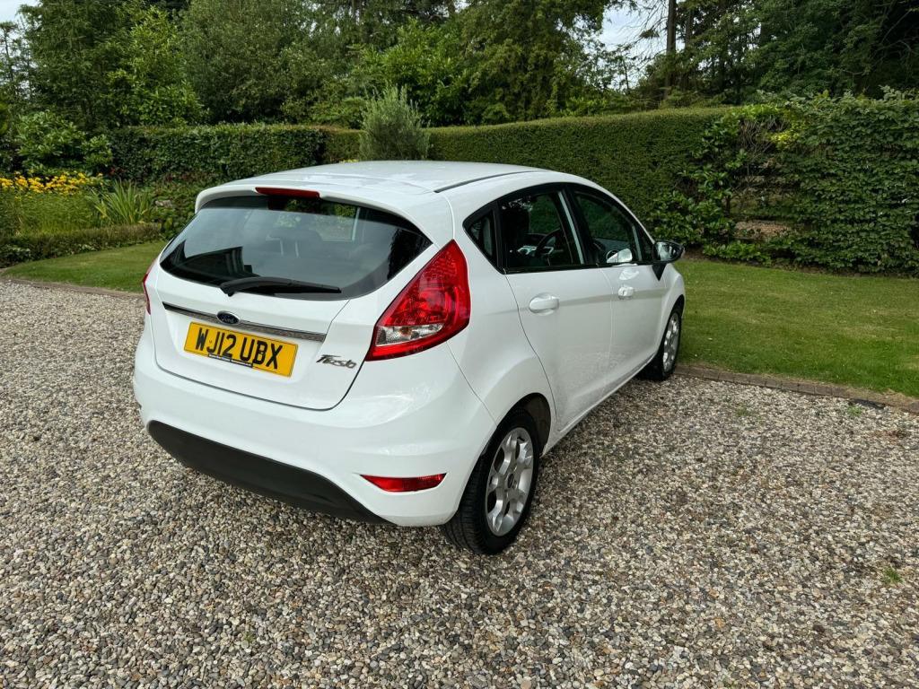 Into stock an immaculate highly popular ford fiesta zetec in excellent condition throughout freshly valeted with full service history and lovely low miles only 60000!This lovely fiesta in eye catching pearl white is 5 doors with many extras inc rear parking censors and a rear reverse camera! It has an mot until june 26!This lovely fiesta provides a quiet smooth faultless economical drive with cheap tax and insurance and with an excellent after service provided!Hpi clear,3mnths warranty,finance available,and finally why not look at our great company reviews for final peace of mind!Must see!Great price as confirmed by autotrader!bargain! in alloy wheels (195/50 tyres) with locking wheel nuts, 60/40 split folding back and fixed cushion, accessory power socket (12v), anti-lock brakes, emergency brake assist (eba), body coloured bumpers, body coloured rear spoiler, centre console, centre high - mounted rear brake light, centre rear seat belt, drivers airbag, drivers knee airbag, electric power assisted steering (epas), electrically - operated front windows with one - touch lowering/closing on drivers side, electrically - operated/heated door mirrors with integrated side indicators, electronic brake - force distribution (ebd), electronic stability programme (esp), four front speakers, front fog lights with chrome bezel rings, front side airbag (head and thorax), front and rear head restraints, isofix mounting brackets for child seat (rear outer seats only), immobiliser, leather gear knob, leather trimmed 3 - spoke steering wheel, manual 4 - way driver seat adjust, manual air-conditioning, passengers airbag, quickclear heated windscreen, radio/cd, mp3 compatible, multifunctional 2 - line display, aux connection, rake and reach adjustable steering column, remote audio controls, remote central locking with two keys, seat buckle pre-tensioners on front seat belts, traction assist, trip computer, two cup holders, tyre mobility kit, upholstery cloth, auto wipers inc. auto headlamps, privacy glass, sony radio cd player & bluetooth usb, perimeter alarm, rear view camera, alloy wheels - 16in 7 spoke zetec, metallic paint