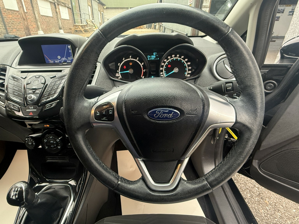 Getaround in this immaculate low mileage 1.25 petrol Fiesta from Ford. This 5-door 5-speed manual Titanium model looks stunning finished in black with contrasting black cloth interior. It has a good spec that includes remote locking, electric windows, alloy wheels, quick-clear windscreen, Sat-Nav and air-conditioning. The car has a comprehensive service history that is made up of some 6-dealer stamps and a long MOT. It comes with the owners book pack, fully stamped service booklet, two keys, locking wheel nut and clear HPi certificate. Phone, text or email for an appointment to view this lovely looking Ulez compliant hatchback soon.