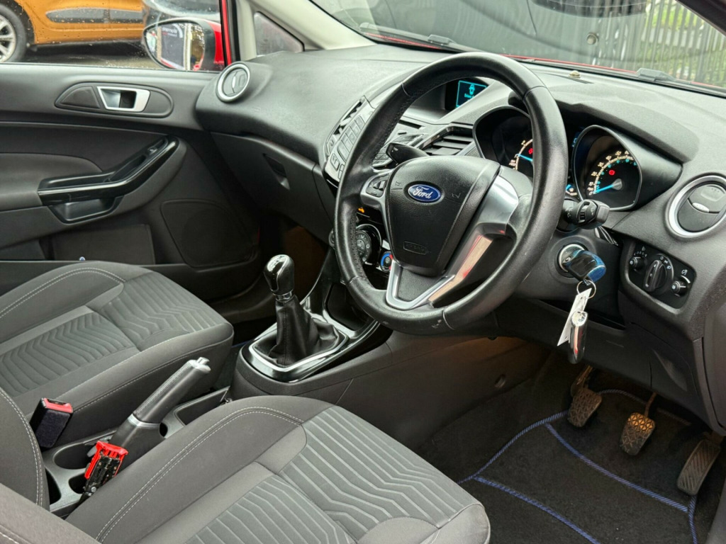 Benefit from 12 months MOT provided on purchase for your peace of mind with this 2014 Ford Fiesta Zetec. This popular hatchback is equipped with a 1.25 litre petrol engine and comes with a 3 month warranty for added security. While the service history is partial, the last service was completed at 93,464 miles. This Zetec model also features manual air conditioning to keep you comfortable whatever the weather.This Ford Fiesta Zetec stands out with its low insurance group, making it a more economical choice for many drivers compared to similar vehicles. The inclusion of manual air conditioning further enhances its appeal, offering a practical and comfortable driving experience. This model represents a sensible option for those seeking a reliable and affordable hatchback.. 12V Power Socket - Front, 15in Alloy Wheels - 5x2 Spoke, ABS - Anti-lock Braking System, Aesthetic Lighting Package, Air Conditioning - Manual, Airbags - Curtain, Airbags - Driver Side Knee, Airbags - Front Passenger, Airbags - Head and Thorax, Airbags - Passenger Deactivation, Brake Warning Lights - Automatic Flashing of Brake Lights Under Heavy Braking, Bumpers - Front and Rear - Body Colour, Centre Console - with Trinket Tray - Two Cup Holders, Chrome Belt Line Finisher, Courtesy Light - Overhead with Theatre-Style Dimming, Courtesy Lights with Map Reading Lights, Door Handles - Body Colour, Door Mirrors - Electrically Operated and Heated, Drivers Airbag, EBA - Emergency Brake Assist, EBD - Electronic Brakeforce Distribution, ECOmode, EPAS - Electric Power Assisted Steering, ESP - Electronic Stability Programme, Electric Windows - Front with One Touch Lowering Drivers, Emergency Brake Warning - Automatic Hazard Warning Lights, Ford AM-FM CD Audio System, Ford Easy Fuel Capless Refuelling System with Misfuel Inhibitor, Front Fog Lights - Chrome Bezel Rings, Front Lower Grille Insert and Surround - Black, Front Seatback Map Pockets - Driver and Passenger, Front Upper Grille - Chrome Finish Surround, Front Upper Grille Insert - Chrome bars, Gear Knob - Leather, Gearshift Indicator Light, Gearshift Knob - Leather-Trimmed with Chrome Finish Bezel, Glovebox - Illuminated, Handbrake Release Knob - Chrome, Head Restraints - 2-way Adjustment, Head Restraints - Rear 2-Way Adjustment, Headlights - Courtesy Delay, Headlights - Follow Me Home, Headlights - Halogen Projector with Silver Bezel, Headliner - Woven, Heated Front Windscreen, High-Mounted Rear Brake Light, IPS - Intelligent Protection System, Interior Door Lever - Chrome Finish, LED Ambient Courtesy Lighting, Leather-Trimmed Handbrake, Loadspace Compartment Light, Loadspace Floor Carpet, Locking Wheel Nuts, MyKey, Passenger Airbag Deactivation Indicator, Passengers seat manual 2-way adjustment, Pollen Filter, Rake and Reach Steering Adjustable, Rear Courtesy Lights, Rear Seats Back - Carpet, Rear Spoiler - Body Colour, Remote Central Locking, Removable Package Tray, Seats - 60-40 Split Folding Back and Fixed Cushion, Seats - Drivers 4-Way Adjustment, Seats - Front Comfort Style, Seats - ISOFIX Mounting Brackets for Child Seats, Second Remote Ignition Key, Steering Wheel - 3-Spoke - Leather Trimmed with Bezel, Steering Wheel - Multifunction, Stowage Pockets - Driver and Front Passenger Seatbacks, Suspension - Front Stabiliser Bar, Tailgate Handle - Body Colour with Chrome Finisher, Trip Computer, Tyre Inflator Kit, USB and AUX Connection for External Music Devices. Part service history