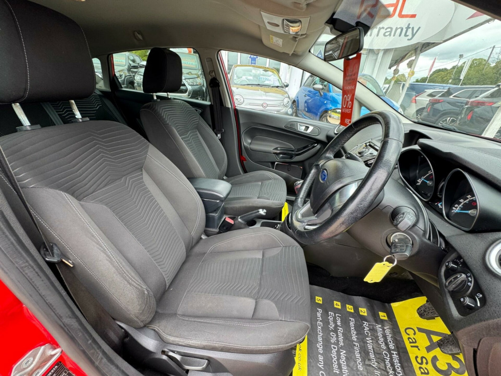 With only 58,350 miles on the clock, this 2014 Ford Fiesta offers exceptionally low mileage for its age. As a Zetec variant with the Zetec trim, this Fiesta is equipped with a 1.25L petrol engine and comes with a clear vehicle history check for added peace of mind. Enjoy enhanced privacy with the rear privacy glass, and stay comfortable on every journey thanks to the manual air conditioning.This Fiesta stands out with its low insurance group, making it an economical choice for drivers. The combination of practical features and efficient running costs makes this Ford Fiesta a smart choice for those seeking a reliable and budget-friendly vehicle.. Bluetooth, USB and AUX Connection for External Music Devices, Air Conditioning - Manual, 15in Alloy Wheels - 5x2 Spoke, ABS - Anti-lock Braking System, Aesthetic Lighting Package, Airbags - Curtain, Airbags - Driver Side Knee, Airbags - Front Passenger, Airbags - Head and Thorax, Airbags - Passenger Deactivation, Brake Warning Lights - Automatic Flashing of Brake Lights Under Heavy Braking, Bumpers - Front and Rear - Body Colour, 12V Power Socket - Front, Centre Console - with Trinket Tray - Two Cup Holders, Chrome Belt Line Finisher, Courtesy Light - Overhead with Theatre-Style Dimming, Courtesy Lights with Map Reading Lights, Door Handles - Body Colour, Door Mirrors - Electrically Operated and Heated, Drivers Airbag, EBA - Emergency Brake Assist, EBD - Electronic Brakeforce Distribution, ECOmode, EPAS - Electric Power Assisted Steering, ESP - Electronic Stability Programme, Electric Windows - Front with One Touch Lowering Drivers, Emergency Brake Warning - Automatic Hazard Warning Lights, Ford AM-FM CD Audio System, Ford Easy Fuel Capless Refuelling System with Misfuel Inhibitor, Front Fog Lights - Chrome Bezel Rings, Front Lower Grille Insert and Surround - Black, Front Seatback Map Pockets - Driver and Passenger, Front Upper Grille - Chrome Finish Surround, Front Upper Grille Insert - Chrome bars, Gear Knob - Leather, Gearshift Indicator Light, Gearshift Knob - Leather-Trimmed with Chrome Finish Bezel, Glovebox - Illuminated, Handbrake Release Knob - Chrome, Head Restraints - 2-way Adjustment, Head Restraints - Rear 2-Way Adjustment, Headlights - Courtesy Delay, Headlights - Follow Me Home, Headlights - Halogen Projector with Silver Bezel, Headliner - Woven, Heated Front Windscreen, High-Mounted Rear Brake Light, IPS - Intelligent Protection System, Interior Door Lever - Chrome Finish, LED Ambient Courtesy Lighting, Leather-Trimmed Handbrake, Loadspace Compartment Light, Loadspace Floor Carpet, Locking Wheel Nuts, MyKey, Passenger Airbag Deactivation Indicator, Passengers seat manual 2-way adjustment, Pollen Filter, Rake and Reach Steering Adjustable, Rear Courtesy Lights, Rear Seats Back - Carpet, Rear Spoiler - Body Colour, Remote Central Locking, Removable Package Tray, Seats - 60-40 Split Folding Back and Fixed Cushion, Seats - Drivers 4-Way Adjustment, Seats - Front Comfort Style, Seats - ISOFIX Mounting Brackets for Child Seats, Second Remote Ignition Key, Steering Wheel - 3-Spoke - Leather Trimmed with Bezel, Steering Wheel - Multifunction, Stowage Pockets - Driver and Front Passenger Seatbacks, Suspension - Front Stabiliser Bar, Tailgate Handle - Body Colour with Chrome Finisher, Trip Computer, Tyre Inflator Kit, Rear Privacy Glass.
