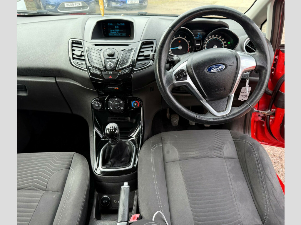 2014 Ford Fiesta Zetec 1.25L Petrol One Owner Full Service History Low Mileage MOT & WarrantyThis 2014 Ford Fiesta Zetec is a truly exceptional example, boasting an incredibly low mileage of just 38,456 miles, especially for its age, and having been cherished by only one owner from new. Powered by a reliable 1.25L petrol engine, this Fiesta comes with a full service history, with the last service completed on 19th September 2025 at 38,456 miles, along with a clear vehicle history check.You can drive away with confidence as this car will be supplied with a full 12-month MOT on purchase. Inside, it benefits from manual air conditioning to keep you comfortable on every journey.The low insurance group rating for this Fiesta Zetec is another significant advantage, suggesting lower running costs compared to many other vehicles in its class. This, combined with its single ownership, comprehensive service record, and exceptionally low mileage, sets this Fiesta apart from others on the market. It represents a well-maintained and economical choice for your next car.?? Warranty Note: This vehicle comes with a 28-day standard warranty. Extended warranty options may be available upon request.We also offer a range of extras and services for your convenience: Drive away insurance and vehicle delivery are available as optional services. We are open seven days a week for viewings and test drives.Visit us at: SHAFFORD Motors, Red Lion Lounge, High Road, Deadman's Cross, SG17 5QQ. b and ford sync, 16in alloy wheels - 7 spoke, spare wheel - 14in steel, lithos cloth - charcoal black, rear centre head restraint, 12v power socket - front, 15in alloy wheels - 5x2 spoke, abs - anti-lock braking system, aesthetic lighting package, air conditioning - manual, airbags - curtain, airbags - driver side knee, airbags - front passenger, airbags - head and thorax, airbags - passenger deactivation, brake warning lights - automatic flashing of brake lights under heavy braking, bumpers - front and rear - body colour, centre console - with trinket tray - two cup holders, chrome belt line finisher, courtesy light - overhead with theatre-style dimming, courtesy lights with map reading lights, door handles - body colour, door mirrors - electrically operated and heated, drivers airbag, eba - emergency brake assist, ebd - electronic brakeforce distribution, ecomode, epas - electric power assisted steering, esp - electronic stability programme, electric windows - front with one touch lowering drivers, emergency brake warning - automatic hazard warning lights, ford am-fm cd audio system, ford easy fuel capless refuelling system with misfuel inhibitor, front fog lights - chrome bezel rings, front lower grille insert and surround - black, front seatback map pockets - driver and passenger, front upper grille - chrome finish surround, front upper grille insert - chrome bars, gear knob - leather, gearshift indicator light, gearshift knob - leather-trimmed with chrome finish bezel, glovebox - illuminated, handbrake release knob - chrome, head restraints - 2-way adjustment, head restraints - rear 2-way adjustment, headlights - courtesy delay, headlights - follow me home, headlights - halogen projector with silver bezel, headliner - woven, heated front windscreen, high-mounted rear brake light, ips - intelligent protection system, interior door lever - chrome finish, led ambient courtesy lighting, leather-trimmed handbrake, loadspace compartment light, loadspace floor carpet, locking wheel nuts, mykey, passenger airbag deactivation indicator, passengers seat manual 2-way adjustment, pollen filter, rake and reach steering adjustable, rear courtesy lights, rear seats back - carpet, rear spoiler - body colour, remote central locking, removable package tray, seats - 60-40 split folding back and fixed cushion, seats - drivers 4-way adjustment, seats - front comfort style, seats - isofix mounting brackets for child seats, second remote ignition key, steering wheel - 3-spoke - leather trimmed with bezel, steering wheel - multifunction, stowage pockets - driver and front passenger seatbacks, suspension - front stabiliser bar, tailgate handle - body colour with chrome finisher, trip computer, tyre inflator kit, usb and aux connection for external music devices