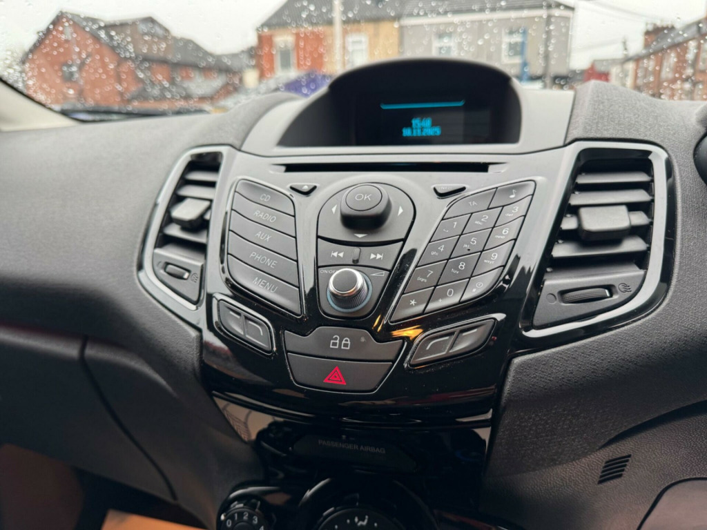 Discover this 2015 Ford Fiesta Zetec, a popular choice for many drivers. This model is equipped with a 1.25 litre petrol engine, offering a balanced performance for everyday journeys. Inside, you'll find air conditioning to keep you comfortable in all seasons, and the Deflation Detection System provides an added layer of safety by alerting you to tyre pressure issues.The Ford Fiesta Zetec is known for its affordability, and this particular model benefits from a low insurance group, making it an economical option for new drivers and those looking to manage running costs. Its practical design and reliable Ford engineering make it a sensible and enjoyable car to own and drive. This vehicle will come with a 12 months MOT and a full under vehicle inspection for your added piece of mind! Test drives/AA inspections welcome, our sales team is waiting for your call!, rd dab with ford sync, 12v power socket - front, 15in alloy wheels - 5x2 spoke, abs - anti-lock braking system, aesthetic lighting package, air conditioning - manual, airbags - curtain, airbags - driver side knee, airbags - front passenger, airbags - head and thorax, airbags - passenger deactivation, body colour exterior mirrors, brake warning lights - automatic flashing of brake lights under heavy braking, bumpers - front and rear - body colour, centre console - with trinket tray - two cup holders, chrome belt line finisher, courtesy light - overhead with theatre-style dimming, courtesy lights with map reading lights, dds - deflation detection system, daytime running lamps, door handles - body colour, door mirrors - electrically operated and heated, drivers airbag, eba - emergency brake assist, ebd - electronic brakeforce distribution, ecomode, epas - electric power assisted steering, esp - electronic stability programme, electric windows - front with one touch lowering drivers, emergency assistance, emergency brake warning - automatic hazard warning lights, engine immobiliser, flow through centre console, ford am-fm cd audio system, ford easy fuel capless refuelling system with misfuel inhibitor, ford sync, front fog lights - chrome bezel rings, front lower grille insert and surround - black, front seatback map pockets - driver and passenger, front upper grille - chrome finish surround, front upper grille insert - chrome bars, gear knob - leather, gearshift indicator light, gearshift knob - leather-trimmed with chrome finish bezel, glovebox - illuminated, head restraints - 2-way adjustment, head restraints - rear 2-way adjustment, headlights - courtesy delay, headlights - follow me home, headlights - halogen projector with silver bezel, headliner - woven, heated front windscreen, high-mounted rear brake light, hill start assist, ips - intelligent protection system, interior door lever - chrome finish, led ambient courtesy lighting, leather-trimmed handbrake, loadspace compartment light, loadspace floor carpet, locking wheel nuts, mykey, pollen filter, rake and reach steering adjustable, rear courtesy lights, rear spoiler - body colour, remote central locking, removable package tray, seats - 60-40 split folding back and fixed cushion, seats - drivers 4-way adjustment, seats - front comfort style, seats - isofix mounting brackets for child seats, speakers - x6, steering wheel - 3-spoke - leather trimmed with bezel, steering wheel - multifunction, stowage pockets - driver and front passenger seatbacks, tailgate handle - body colour with chrome finisher, tinted glass, trip computer, tyre inflator kit, usb and aux connection for external music devices, voice control - audio