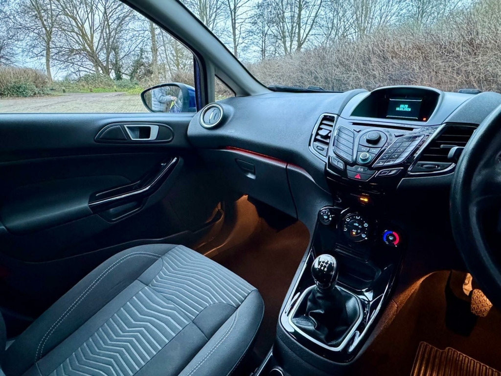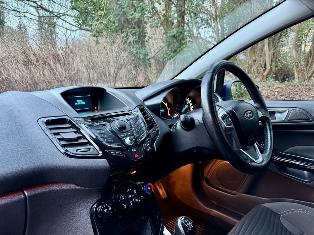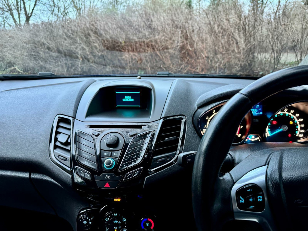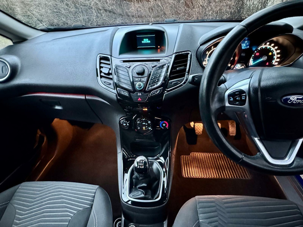 Discover this 2014 Ford Fiesta Zetec, a car with remarkably low mileage for its age, having covered just 47,936 miles. This well maintained example has had only two owners since new and is powered by an efficient 1.25 litre petrol engine. For your comfort, it comes equipped with manual air conditioning, ensuring a pleasant cabin temperature whatever the weather.This Fiesta Zetec stands out due to its low mileage and limited ownership, suggesting it has been carefully looked after. Its position in a low insurance group also makes it an economical choice for many drivers, potentially saving you money on running costs compared to similar vehicles. This combination of practical features and favourable ownership history makes it a sensible and appealing option. v power socket - front, 15in alloy wheels - 5x2 spoke, abs - anti-lock braking system, aesthetic lighting package, air conditioning - manual, airbags - curtain, airbags - driver side knee, airbags - front passenger, airbags - head and thorax, airbags - passenger deactivation, brake warning lights - automatic flashing of brake lights under heavy braking, bumpers - front and rear - body colour, centre console - with trinket tray - two cup holders, chrome belt line finisher, courtesy light - overhead with theatre-style dimming, courtesy lights with map reading lights, door handles - body colour, door mirrors - electrically operated and heated, drivers airbag, eba - emergency brake assist, ebd - electronic brakeforce distribution, ecomode, epas - electric power assisted steering, esp - electronic stability programme, electric windows - front with one touch lowering drivers, emergency brake warning - automatic hazard warning lights, ford am-fm cd audio system, ford easy fuel capless refuelling system with misfuel inhibitor, front fog lights - chrome bezel rings, front lower grille insert and surround - black, front seatback map pockets - driver and passenger, front upper grille - chrome finish surround, front upper grille insert - chrome bars, gear knob - leather, gearshift indicator light, gearshift knob - leather-trimmed with chrome finish bezel, glovebox - illuminated, handbrake release knob - chrome, head restraints - 2-way adjustment, head restraints - rear 2-way adjustment, headlights - courtesy delay, headlights - follow me home, headlights - halogen projector with silver bezel, headliner - woven, heated front windscreen, high-mounted rear brake light, ips - intelligent protection system, interior door lever - chrome finish, led ambient courtesy lighting, leather-trimmed handbrake, loadspace compartment light, loadspace floor carpet, locking wheel nuts, mykey, passenger airbag deactivation indicator, passengers seat manual 2-way adjustment, pollen filter, rake and reach steering adjustable, rear courtesy lights, rear seats back - carpet, rear spoiler - body colour, remote central locking, removable package tray, seats - 60-40 split folding back and fixed cushion, seats - drivers 4-way adjustment, seats - front comfort style, seats - isofix mounting brackets for child seats, second remote ignition key, steering wheel - 3-spoke - leather trimmed with bezel, steering wheel - multifunction, stowage pockets - driver and front passenger seatbacks, suspension - front stabiliser bar, tailgate handle - body colour with chrome finisher, trip computer, tyre inflator kit, usb and aux connection for external music devices