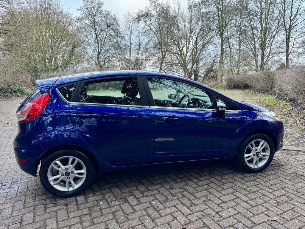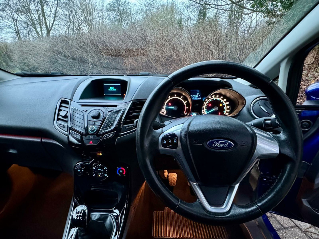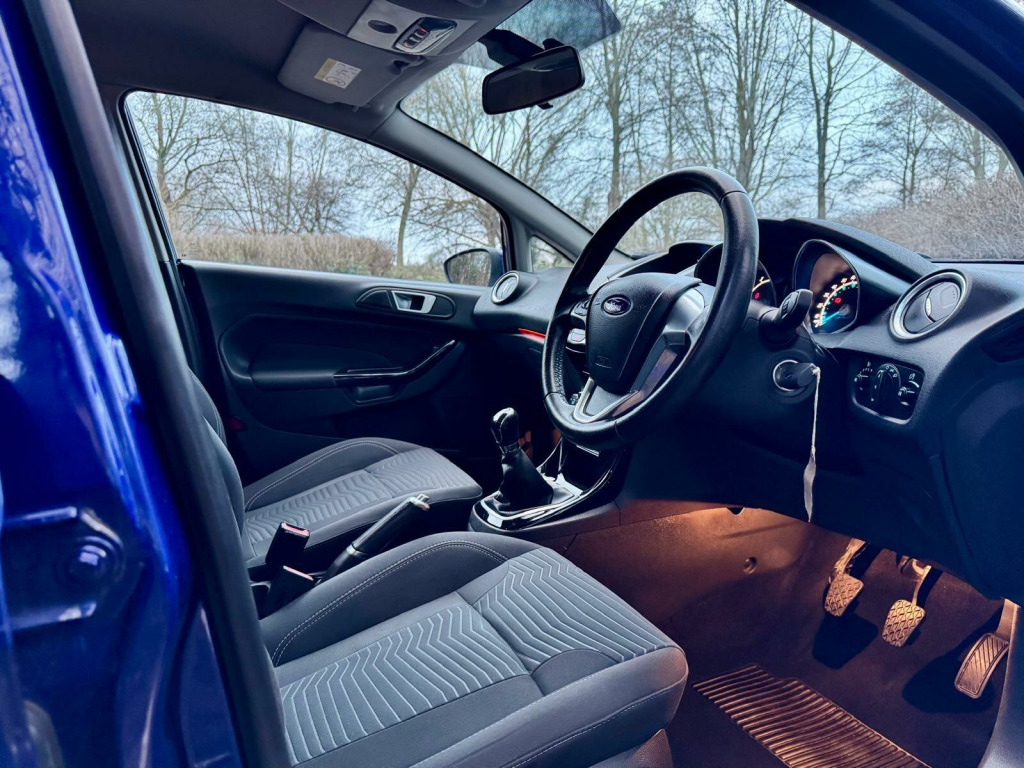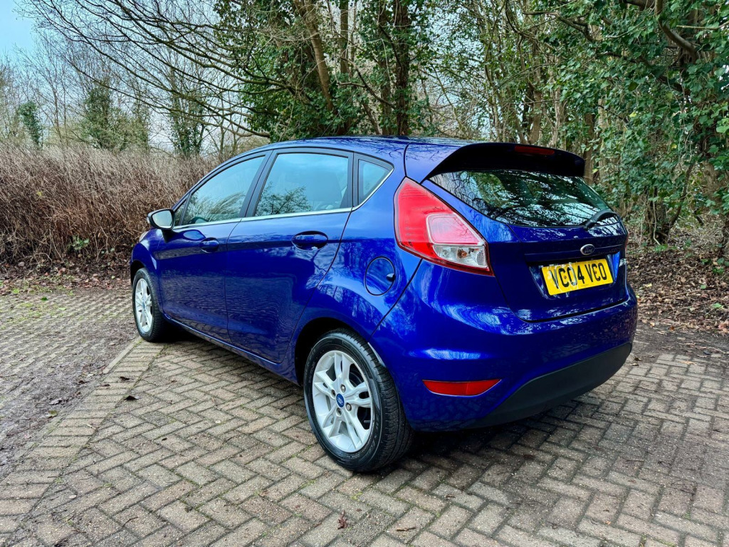 Discover this 2014 Ford Fiesta Zetec, a car with remarkably low mileage for its age, having covered just 47,936 miles. This well maintained example has had only two owners since new and is powered by an efficient 1.25 litre petrol engine. For your comfort, it comes equipped with manual air conditioning, ensuring a pleasant cabin temperature whatever the weather.This Fiesta Zetec stands out due to its low mileage and limited ownership, suggesting it has been carefully looked after. Its position in a low insurance group also makes it an economical choice for many drivers, potentially saving you money on running costs compared to similar vehicles. This combination of practical features and favourable ownership history makes it a sensible and appealing option. v power socket - front, 15in alloy wheels - 5x2 spoke, abs - anti-lock braking system, aesthetic lighting package, air conditioning - manual, airbags - curtain, airbags - driver side knee, airbags - front passenger, airbags - head and thorax, airbags - passenger deactivation, brake warning lights - automatic flashing of brake lights under heavy braking, bumpers - front and rear - body colour, centre console - with trinket tray - two cup holders, chrome belt line finisher, courtesy light - overhead with theatre-style dimming, courtesy lights with map reading lights, door handles - body colour, door mirrors - electrically operated and heated, drivers airbag, eba - emergency brake assist, ebd - electronic brakeforce distribution, ecomode, epas - electric power assisted steering, esp - electronic stability programme, electric windows - front with one touch lowering drivers, emergency brake warning - automatic hazard warning lights, ford am-fm cd audio system, ford easy fuel capless refuelling system with misfuel inhibitor, front fog lights - chrome bezel rings, front lower grille insert and surround - black, front seatback map pockets - driver and passenger, front upper grille - chrome finish surround, front upper grille insert - chrome bars, gear knob - leather, gearshift indicator light, gearshift knob - leather-trimmed with chrome finish bezel, glovebox - illuminated, handbrake release knob - chrome, head restraints - 2-way adjustment, head restraints - rear 2-way adjustment, headlights - courtesy delay, headlights - follow me home, headlights - halogen projector with silver bezel, headliner - woven, heated front windscreen, high-mounted rear brake light, ips - intelligent protection system, interior door lever - chrome finish, led ambient courtesy lighting, leather-trimmed handbrake, loadspace compartment light, loadspace floor carpet, locking wheel nuts, mykey, passenger airbag deactivation indicator, passengers seat manual 2-way adjustment, pollen filter, rake and reach steering adjustable, rear courtesy lights, rear seats back - carpet, rear spoiler - body colour, remote central locking, removable package tray, seats - 60-40 split folding back and fixed cushion, seats - drivers 4-way adjustment, seats - front comfort style, seats - isofix mounting brackets for child seats, second remote ignition key, steering wheel - 3-spoke - leather trimmed with bezel, steering wheel - multifunction, stowage pockets - driver and front passenger seatbacks, suspension - front stabiliser bar, tailgate handle - body colour with chrome finisher, trip computer, tyre inflator kit, usb and aux connection for external music devices