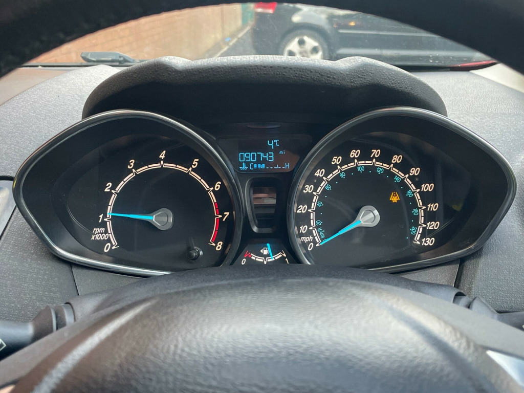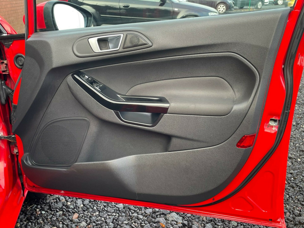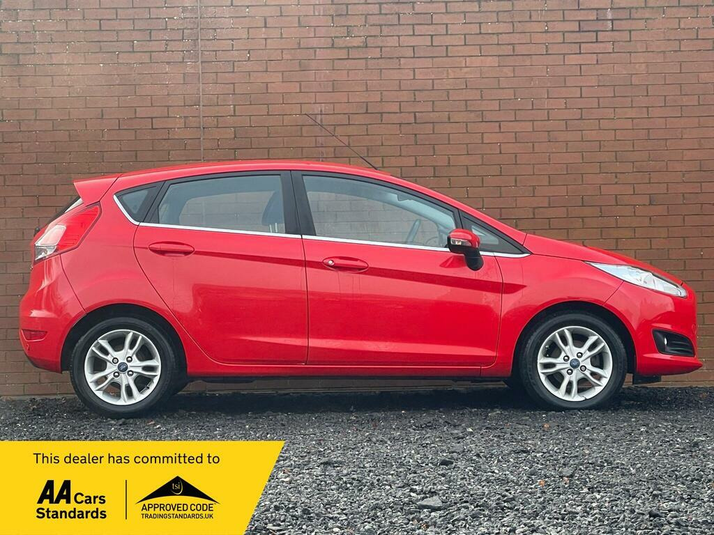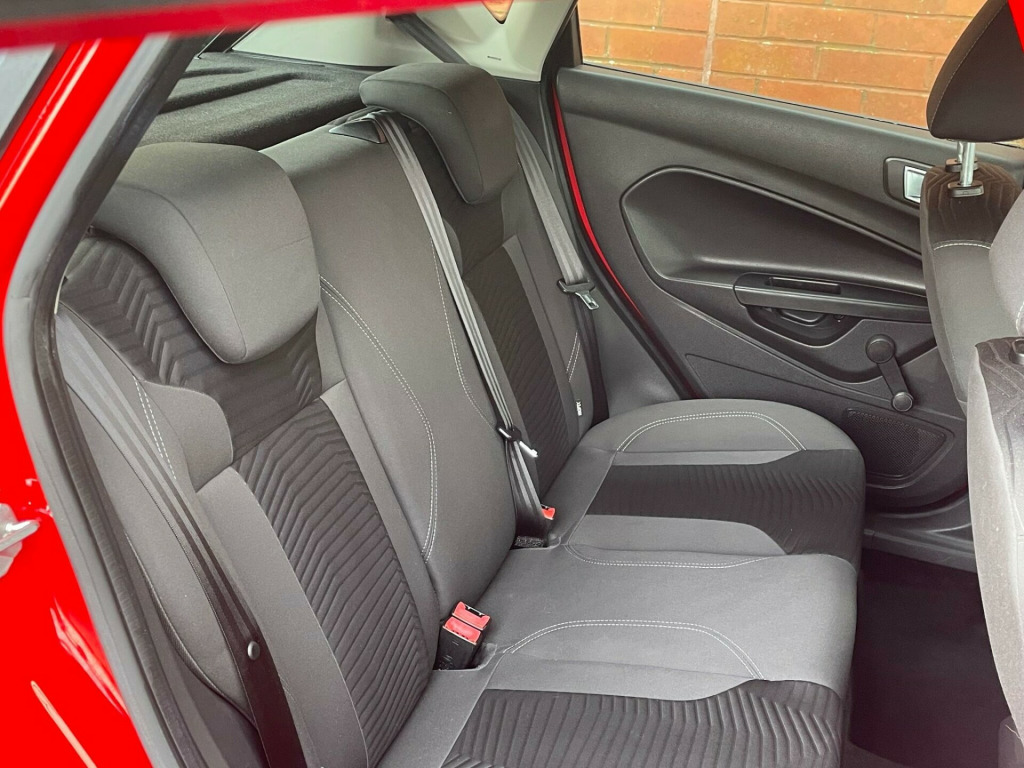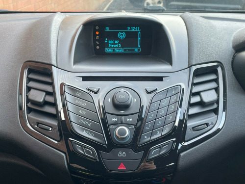 This 2014 Ford Fiesta Zetec offers a superb blend of practicality and comfort, making it an excellent choice for everyday driving. Powered by an efficient 1.25 litre petrol engine, this model is presented in the popular Zetec trim. It comes equipped with rear parking sensors to aid manoeuvrability, ensuring you can park with confidence in tighter spaces. Inside, you will find manual air conditioning to keep you comfortable in all weather conditions.The Ford Fiesta Zetec is renowned for its affordability and this particular example benefits from a low insurance group, indicating it is economical to own and run compared to many other vehicles in its class. This, combined with its sensible engine size and the inclusion of parking assistance features, makes it a well rounded and sensible option for a wide range of drivers seeking a reliable and easy to manage car., rd dab with ford sync, front and rear parking sensors with power-foldable door mirrors, city pack, 12v power socket - front, 15in alloy wheels - 5x2 spoke, abs - anti-lock braking system, aesthetic lighting package, air conditioning - manual, airbags - curtain, airbags - driver side knee, airbags - front passenger, airbags - head and thorax, airbags - passenger deactivation, brake warning lights - automatic flashing of brake lights under heavy braking, bumpers - front and rear - body colour, centre console - with trinket tray - two cup holders, chrome belt line finisher, courtesy light - overhead with theatre-style dimming, courtesy lights with map reading lights, door handles - body colour, door mirrors - electrically operated and heated, drivers airbag, eba - emergency brake assist, ebd - electronic brakeforce distribution, ecomode, epas - electric power assisted steering, esp - electronic stability programme, electric windows - front with one touch lowering drivers, emergency brake warning - automatic hazard warning lights, ford am-fm cd audio system, ford easy fuel capless refuelling system with misfuel inhibitor, front fog lights - chrome bezel rings, front lower grille insert and surround - black, front seatback map pockets - driver and passenger, front upper grille - chrome finish surround, front upper grille insert - chrome bars, gear knob - leather, gearshift indicator light, gearshift knob - leather-trimmed with chrome finish bezel, glovebox - illuminated, handbrake release knob - chrome, head restraints - 2-way adjustment, head restraints - rear 2-way adjustment, headlights - courtesy delay, headlights - follow me home, headlights - halogen projector with silver bezel, headliner - woven, heated front windscreen, high-mounted rear brake light, ips - intelligent protection system, interior door lever - chrome finish, led ambient courtesy lighting, leather-trimmed handbrake, loadspace compartment light, loadspace floor carpet, locking wheel nuts, mykey, passenger airbag deactivation indicator, passengers seat manual 2-way adjustment, pollen filter, rake and reach steering adjustable, rear courtesy lights, rear seats back - carpet, rear spoiler - body colour, remote central locking, removable package tray, seats - 60-40 split folding back and fixed cushion, seats - drivers 4-way adjustment, seats - front comfort style, seats - isofix mounting brackets for child seats, second remote ignition key, steering wheel - 3-spoke - leather trimmed with bezel, steering wheel - multifunction, stowage pockets - driver and front passenger seatbacks, suspension - front stabiliser bar, tailgate handle - body colour with chrome finisher, trip computer, tyre inflator kit, usb and aux connection for external music devices