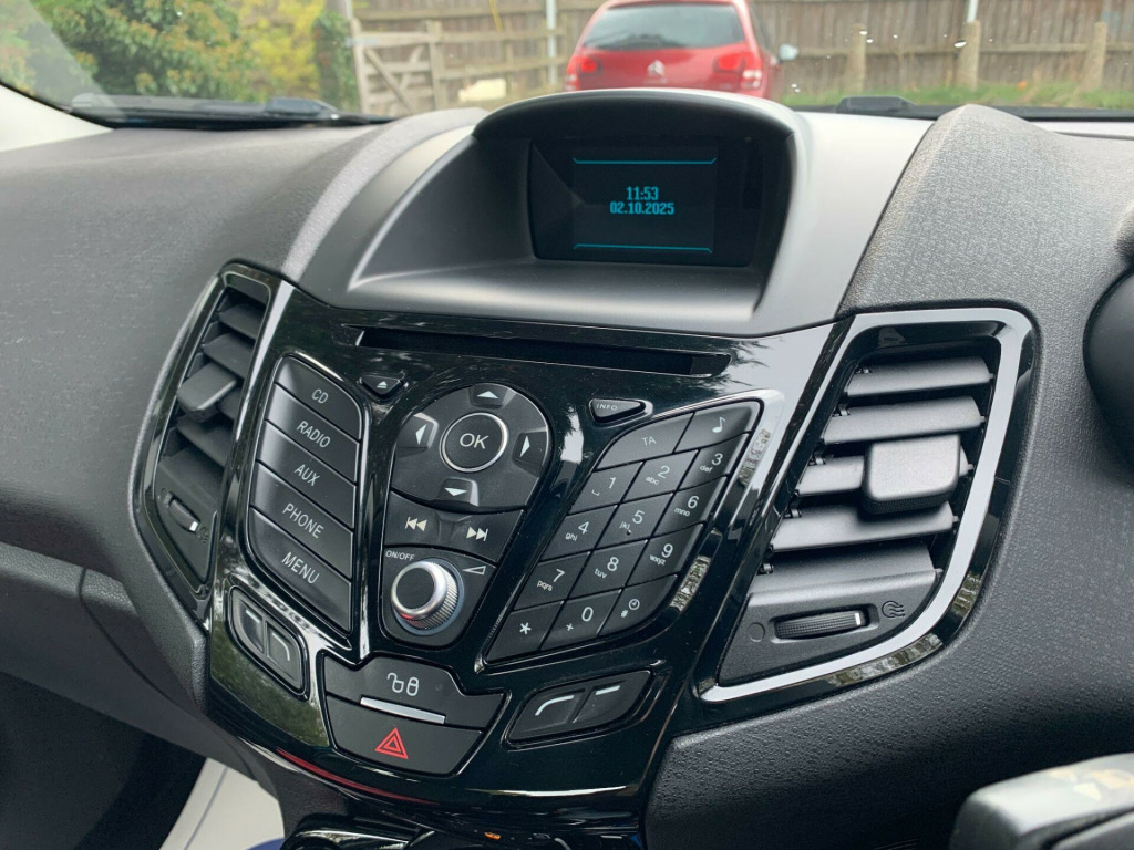 This 2015 Ford Fiesta Zetec is a great choice for those seeking a reliable and economical car. Powered by a 1.25 litre petrol engine, this Euro 6 compliant model offers a smooth driving experience.  It comes equipped with manual air conditioning to keep you comfortable in all weather and Bluetooth hands free phone connectivity, allowing you to stay connected safely on the go.The Ford Fiesta Zetec is known for its affordability, and this particular model benefits from being in a low insurance group, which can help to keep your running costs down. This indicates that the vehicle is often cheaper to insure compared to similar cars, making it an even more attractive option for many drivers.. 12V Power Socket - Front, 15in Alloy Wheels - 5x2 Spoke, ABS - Anti-lock Braking System, AUX Connection, Aesthetic Lighting Package, Air Conditioning - Manual, Airbags - Curtain, Airbags - Driver Side Knee, Airbags - Front Passenger, Airbags - Head and Thorax, Airbags - Passenger Deactivation, Bluetooth Hands-free Phone, Body Colour Exterior Mirrors, Brake Warning Lights - Automatic Flashing of Brake Lights Under Heavy Braking, Bumpers - Front and Rear - Body Colour, Centre Console - with Trinket Tray - Two Cup Holders, Chrome Belt Line Finisher, Courtesy Light - Overhead with Theatre-Style Dimming, Courtesy Lights with Map Reading Lights, DDS - Deflation Detection System, Daytime Running Lamps, Door Handles - Body Colour, Door Mirrors - Electrically Operated and Heated, Drivers Airbag, EBA - Emergency Brake Assist, EBD - Electronic Brakeforce Distribution, ECOmode, EPAS - Electric Power Assisted Steering, ESP - Electronic Stability Programme, Electric Windows - Front with One Touch Lowering Drivers, Emergency Assistance, Emergency Brake Warning - Automatic Hazard Warning Lights, Engine Immobiliser, Flow Through Centre Console, Ford AM-FM CD Audio System, Ford Easy Fuel Capless Refuelling System with Misfuel Inhibitor, Ford SYNC, Front Fog Lights - Chrome Bezel Rings, Front Lower Grille Insert and Surround - Black, Front Seatback Map Pockets - Driver and Passenger, Front Upper Grille - Chrome Finish Surround, Front Upper Grille Insert - Chrome bars, Gear Knob - Leather, Gearshift Indicator Light, Gearshift Knob - Leather-Trimmed with Chrome Finish Bezel, Glovebox - Illuminated, Head Restraints - 2-way Adjustment, Head Restraints - Rear 2-Way Adjustment, Headlights - Follow Me Home, Headlights - Halogen Projector with Silver Bezel, Headliner - Woven, Heated Front Windscreen, High-Mounted Rear Brake Light, Hill Start Assist, IPS - Intelligent Protection System, Interior Door Lever - Chrome Finish, LED Ambient Courtesy Lighting, Leather-Trimmed Handbrake, Loadspace Compartment Light, Loadspace Floor Carpet, Locking Wheel Nuts, MyKey, Pollen Filter, Rake and Reach Steering Adjustable, Rear Courtesy Lights, Rear Spoiler - Body Colour, Remote Central Locking, Removable Package Tray, Seats - 60-40 Split Folding Back and Fixed Cushion, Seats - Drivers 4-Way Adjustment, Seats - Front Comfort Style, Seats - ISOFIX Mounting Brackets for Child Seats, Speakers - x6, Steering Wheel - 3-Spoke - Leather Trimmed with Bezel, Steering Wheel - Multifunction, Stowage Pockets - Driver and Front Passenger Seatbacks, Tailgate Handle - Body Colour with Chrome Finisher, Tinted Glass, Traction Control - TC, Trip Computer, Tyre Inflator Kit, Tyre Pressure Monitoring System, USB Connection, Voice Control - Audio. Full service history