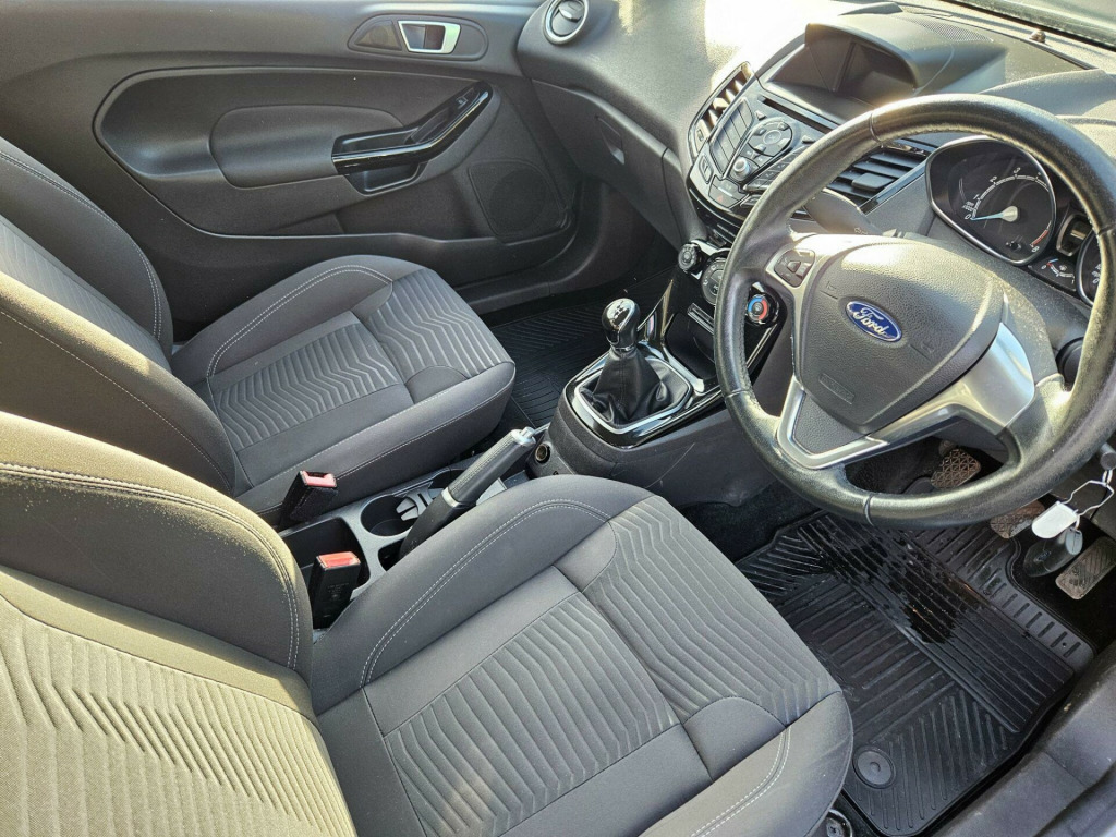 This 2016 Ford Fiesta Zetec boasts a full service history and Just serviced by us including 4 new tyres. Having had only two owners, offering excellent provenance. Powered by a 1.25 litre petrol engine and meeting Euro 6 emissions standards, this model comes equipped with the Ford Navigation System featuring DAB radio and Ford SYNC, along with Bluetooth handsfree connectivity for your phone. A clear vehicle history check further assures you of its well maintained condition.The Zetec trim level of this Fiesta is designed to provide a comfortable and connected driving experience. Its low insurance group rating is a significant advantage, indicating that running costs for this vehicle are likely to be lower compared to many other cars in its class. This combination of practical features, strong provenance, and economical running makes this Ford Fiesta a sensible choice. rd navigation system with dab and ford sync, lithos cloth - charcoal black, 12v power socket - front, 15in alloy wheels - 5x2 spoke, abs - anti-lock braking system, air conditioning - manual, airbags - curtain, airbags - driver side knee, airbags - front passenger, airbags - front side, airbags - passenger deactivation, ambient lighting, bluetooth hands-free phone, body colour exterior mirrors, bumpers - front and rear - body colour, centre console - with trinket tray - two cup holders, chrome belt line finisher, courtesy light - front with map reading lights, courtesy light - overhead with theatre-style dimming, courtesy light - rear, door handles - body colour, door mirrors - electrically operated and heated, door mirrors with integrated indicators, double locking, drivers airbag, eba - emergency brake assist, ebd - electronic brakeforce distribution, ecomode, epas - electric power assisted steering, esp - electronic stability programme, electric windows - front with one touch opening and closing, emergency assistance, emergency brake warning - automatic hazard warning lights, engine immobiliser - passive anti-theft system, footwell lights - driver and passenger, ford am-fm cd audio system, ford dab with ford sync, ford easy fuel capless refuelling system with misfuel inhibitor, ford sync, front fog lights - chrome bezel rings, front lower grille insert - black, front seat - passengers manual fore-aft adjustment, front seatback map pockets - driver and passenger, front upper grille - chrome finish surround, front upper grille insert - chrome bars, gear knob - leather, gear shift indicator, glovebox - illuminated, head restraints - 2-way adjustment, headlights - courtesy delay, headlights - halogen projector with silver bezel, headliner - woven, heated front windscreen, high-mounted rear brake light, hill start assist, ips - intelligent protection system, interior door lever - chrome finish, led daytime running lights, leather-trimmed handbrake, loadspace compartment light, loadspace floor carpet, locking wheel nuts, mykey, pollen filter, rake and reach steering adjustable, rear seats back - carpet, rear spoiler - body colour, rear wash - wipe, remote central locking, removable package tray, seat bolster - metal grey stitching, seats - 60-40 split folding back and fixed cushion, seats - drivers manual height and fore-aft adjustment, seats - front comfort style, seats - isofix mounting brackets for child seats, speakers - x6, steering wheel - 3 spoke - leather trimmed, steering wheel - multifunction, suspension - front stabiliser bar, tailgate handle - body colour, tinted glass, traction control - tc, trip computer, tyre pressure monitoring system, tyre repair kit, usb and aux connection for external music devices, voice control - audio, wipers - front variable intermittent