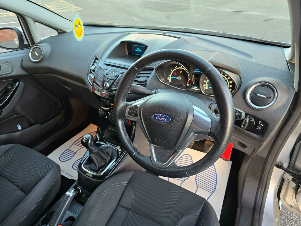 Discover this 2015 Ford Fiesta Zetec, a popular choice for many drivers. This model is equipped with a 1.25 litre petrol engine and meets Euro 6 emissions standards. Inside, you'll find convenient features such as manual air conditioning to keep you comfortable and Bluetooth hands free phone connectivity for safe and easy communication on the go.This Ford Fiesta Zetec also benefits from being in a low insurance group, which can help to keep your running costs down. These factors combined indicate that this Fiesta offers excellent value and practicality compared to other vehicles in its class, making it a sensible and enjoyable option for your next car.. 12V Power Socket - Front, 15in Alloy Wheels - 5x2 Spoke, ABS - Anti-lock Braking System, AUX Connection, Aesthetic Lighting Package, Air Conditioning - Manual, Airbags - Curtain, Airbags - Driver Side Knee, Airbags - Front Passenger, Airbags - Head and Thorax, Airbags - Passenger Deactivation, Bluetooth Hands-free Phone, Body Colour Exterior Mirrors, Brake Warning Lights - Automatic Flashing of Brake Lights Under Heavy Braking, Bumpers - Front and Rear - Body Colour, Centre Console - with Trinket Tray - Two Cup Holders, Chrome Belt Line Finisher, Courtesy Light - Overhead with Theatre-Style Dimming, Courtesy Lights with Map Reading Lights, DDS - Deflation Detection System, Daytime Running Lamps, Door Handles - Body Colour, Door Mirrors - Electrically Operated and Heated, Drivers Airbag, EBA - Emergency Brake Assist, EBD - Electronic Brakeforce Distribution, ECOmode, EPAS - Electric Power Assisted Steering, ESP - Electronic Stability Programme, Electric Windows - Front with One Touch Lowering Drivers, Emergency Assistance, Emergency Brake Warning - Automatic Hazard Warning Lights, Engine Immobiliser, Flow Through Centre Console, Ford AM-FM CD Audio System, Ford Easy Fuel Capless Refuelling System with Misfuel Inhibitor, Ford SYNC, Front Fog Lights - Chrome Bezel Rings, Front Lower Grille Insert and Surround - Black, Front Seatback Map Pockets - Driver and Passenger, Front Upper Grille - Chrome Finish Surround, Front Upper Grille Insert - Chrome bars, Gear Knob - Leather, Gearshift Indicator Light, Gearshift Knob - Leather-Trimmed with Chrome Finish Bezel, Glovebox - Illuminated, Head Restraints - 2-way Adjustment, Head Restraints - Rear 2-Way Adjustment, Headlights - Follow Me Home, Headlights - Halogen Projector with Silver Bezel, Headliner - Woven, Heated Front Windscreen, High-Mounted Rear Brake Light, Hill Start Assist, IPS - Intelligent Protection System, Interior Door Lever - Chrome Finish, LED Ambient Courtesy Lighting, Leather-Trimmed Handbrake, Loadspace Compartment Light, Loadspace Floor Carpet, Locking Wheel Nuts, MyKey, Pollen Filter, Rake and Reach Steering Adjustable, Rear Courtesy Lights, Rear Spoiler - Body Colour, Remote Central Locking, Removable Package Tray, Seats - 60-40 Split Folding Back and Fixed Cushion, Seats - Drivers 4-Way Adjustment, Seats - Front Comfort Style, Seats - ISOFIX Mounting Brackets for Child Seats, Speakers - x6, Steering Wheel - 3-Spoke - Leather Trimmed with Bezel, Steering Wheel - Multifunction, Stowage Pockets - Driver and Front Passenger Seatbacks, Tailgate Handle - Body Colour with Chrome Finisher, Tinted Glass, Traction Control - TC, Trip Computer, Tyre Inflator Kit, Tyre Pressure Monitoring System, USB Connection, Voice Control - Audio.