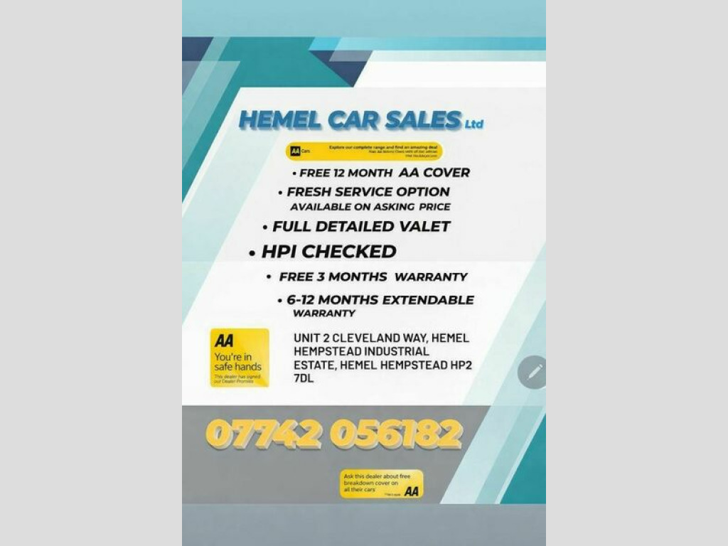 Free 3 months Dealer Warranty with car , Extended Warranty available on extra cost, FRESH SERVICE done at present millage, Free 12 Months AA Breakdown cover with car, Hpi clear, Air Conditioning, Brake Assist, Engine Immobiliser, Front Airbags, Front Fog Lights, Heated Door Mirrors, Heated Rear Windshield, Heated Windscreen, Power Assisted Steering, Safety Belts