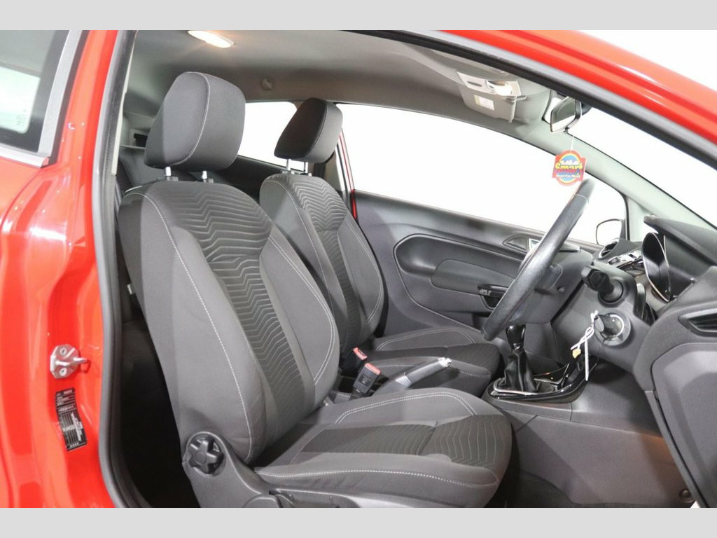 AWB Motors are pleased to present this stunning Ford Fiesta finished in Racing Red complemented by BLACK ALLOY WHEELS, BLACK MIRROR BACKS and Front Fog Lights. Charge your phone using the USB port. Perfect for listening to your favourite music either from your phone through the AUX Port or simply using the CD Player. These alongside all other radio functions can be controlled using the Multifunction Steering Wheel. Drive in comfort whatever the weather with AIR CONDITIONING and QuickClear HEATED WINDSCREEN. Safe for your children with ISOFIX Anchorage Points. Other useful ancillaries include Electric Mirrors, Electric Windows and Remote Central Locking. Cheap to run being just £35 TAX, LOW INSURANCE GROUP and thanks to its Fuel Efficient Engine Engine achieving 55+MPG. 12V Power Socket - Front, 15in Alloy Wheels - 5x2 Spoke, ABS - Anti-lock Braking System, Aesthetic Lighting Package, Air Conditioning - Manual, Airbags - Curtain, Airbags - Driver Side Knee, Airbags - Front Passenger, Airbags - Head and Thorax, Airbags - Passenger Deactivation, Brake Warning Lights - Automatic Flashin, Bumpers - Front and Rear - Body Colour, Centre Console - with Trinket Tray - Two, Chrome Belt Line Finisher, Courtesy Light - Overhead with Theatre-S, Courtesy Lights with Map Reading Lights, Door Handles - Body Colour, Door Mirrors - Electrically Operated and, Drivers Airbag, EBA - Emergency Brake Assist, EBD - Electronic Brakeforce Distribution, ECOmode, Electric Windows - F