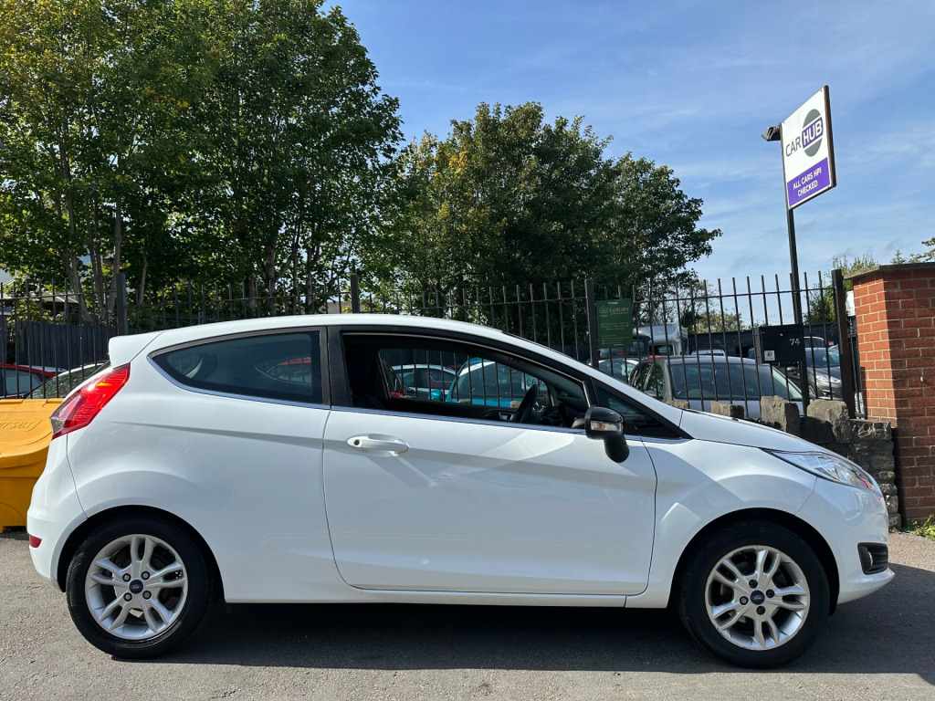 2014 64 FORD FIESTA ZETEC 1242CC PETROL 3 DOOR HATCHBACK FINISHED IN FROZEN WHITE, THIS VEHICLE HAS COVERED JUST 64,000 MILES AND COMES WITH JUST 2 PREVIOUS OWNERS FROM NEW, SERVICE HISTORY, £35 PER YEAR ROAD TAX,  INSURANCE GROUP 7E, USB AND AUX CONNECTION, ELECTRIC FRONT WINDOWS, CLOTH INTERIOR, HEAD RESTS, POWER STEERING, SPOT LIGHTS, HEATED REAR SCREEN AND WILL BE OFFERED WITH 3 MONTHS ENGINE AND GEARBOX WARRANTY, PLEASE CALL FOR FULL DETAILS.