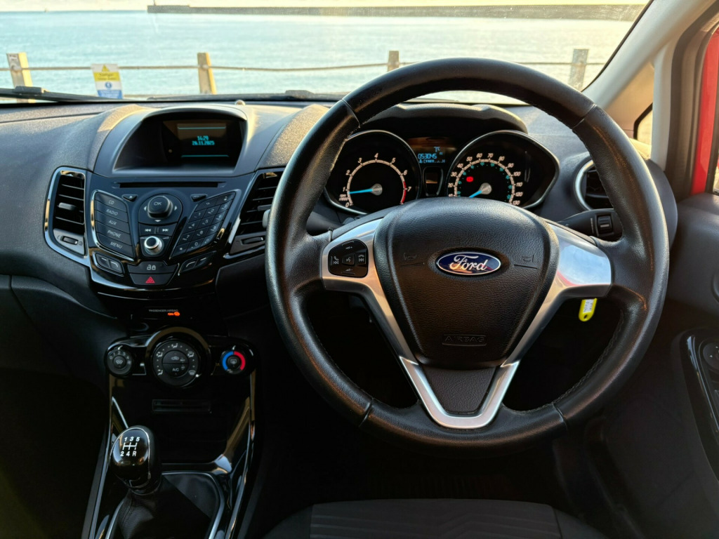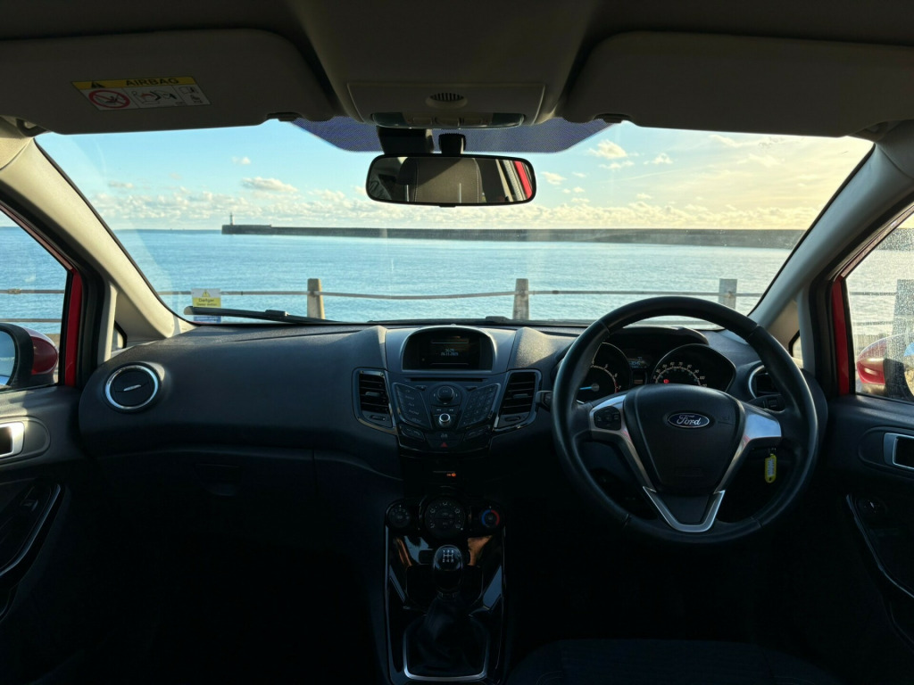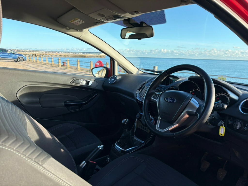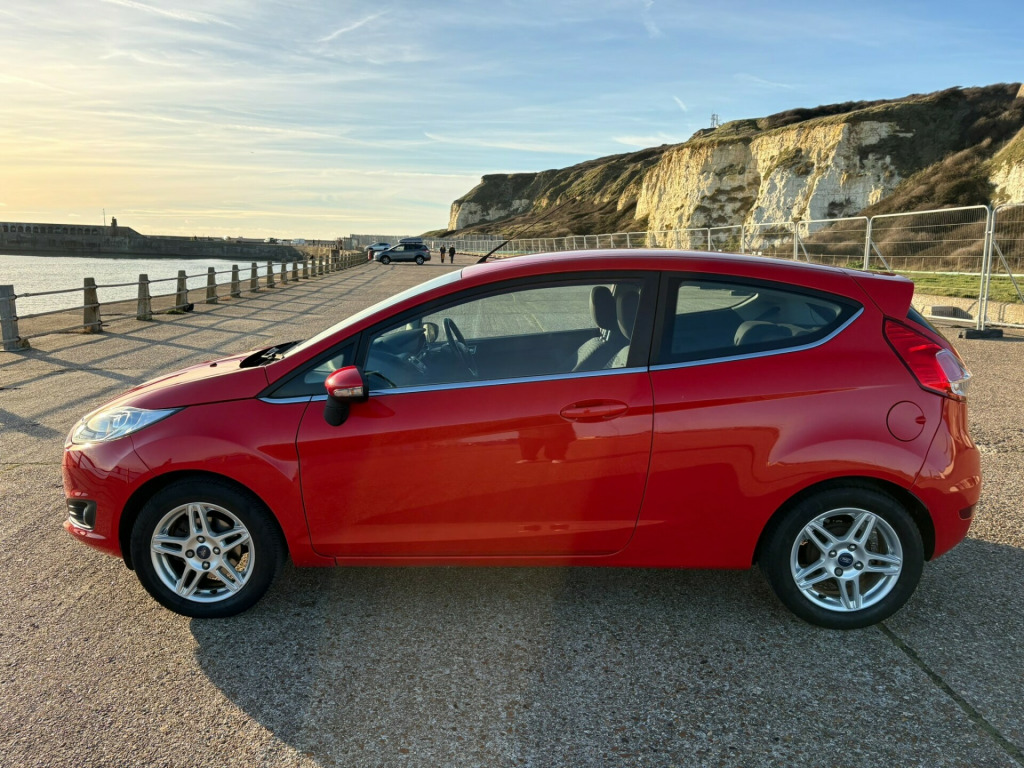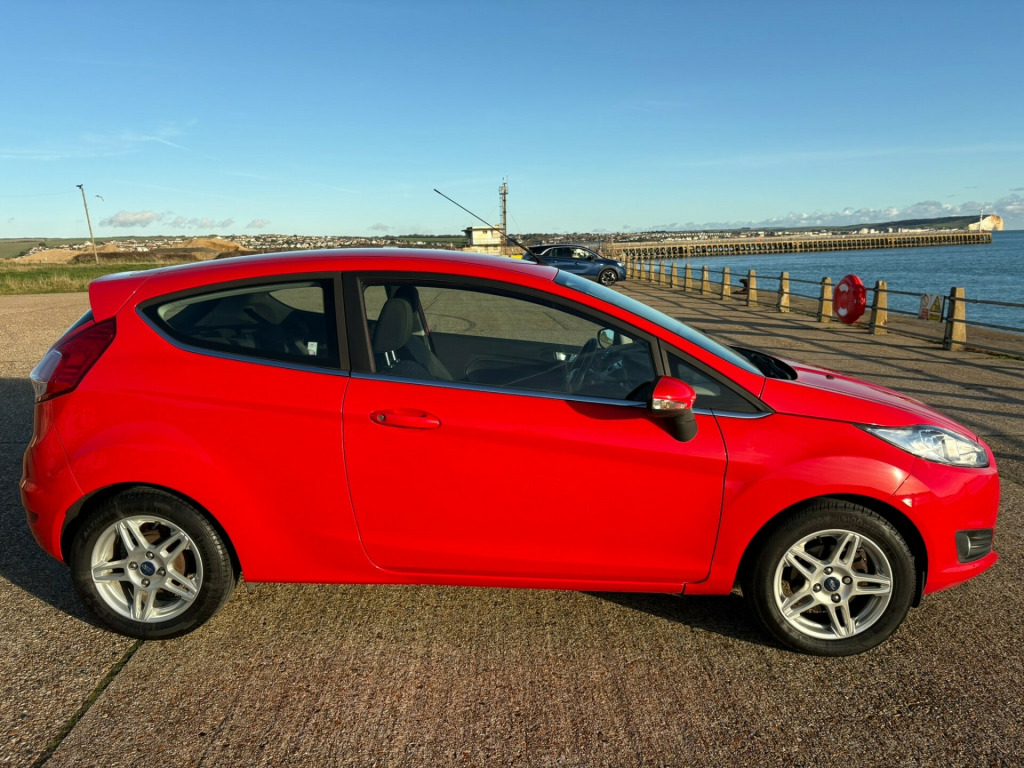 Cliff Motors are proud to present this pristine example of the Ford Fiesta Zetec in Red in low mileage, only having covered 52,000 miles since the registration in 2013. The car has a 1.25 petrol engine, 5-speed manual gearbox, and is ULEZ Compliant. The car has been well maintained with Part Service History, including main dealer stamps! The car is a pleasure to drive. It also benefits from being sold with a New Years MOT until 17th November 2026! The car has £35 road tax! There is also a good specification on the car, being the Zetec spec, with equipment such as: 12V Socket, 15'' Alloy Wheels, 2 Remote Keys, 6 Speakers, ABS, AUX Input, Air Conditioning, Alarm, Bluetooth, Body Coloured Door Handles, Curtain Airbags, Cloth Interior, Daytime Running Lamps, ESP, ECO mode, Electric Windows, Electric Mirrors, Emergency Assistance, Fog Lights, Footwell Lights, Glovebox Light, Heated Mirrors, Heated Windscreen, ISOFIX, LED Rear Lights, Leather Steering Wheel, Leather Handbrake, Locking Wheel Nuts, MyKey, Power Steering, Pollen Filter, Steering Adjustment, Traction Control, Trip Computer, Tyre Pressure Monitoring System, Tyre Repair Kit, and USB Input. Finally, there is a complimentary Warranty First Dynamic 3-month warranty included with this car! The warranty ensures that your car ownership experience is stress-free and you have peace of mind. There is also the option to extend both the coverage level and length to 48 months. Finance is available on this vehicle through Hawkstone Finance, with flexible options to suit your budget. All vehicles sold by Cliff Motors also benefit from an oil service and New MOT (if required) before sale! Finance is available on our vehicles through Hawkstone Finance. Please contact us for more details. We are happy to accept part-exchange and deliver nationwide. We are open 6 days a week (Sunday by appointment) so get in touch today on 07543 069999 or come and visit us at 291 South Coast Road, Peacehaven, BN10 7HX!