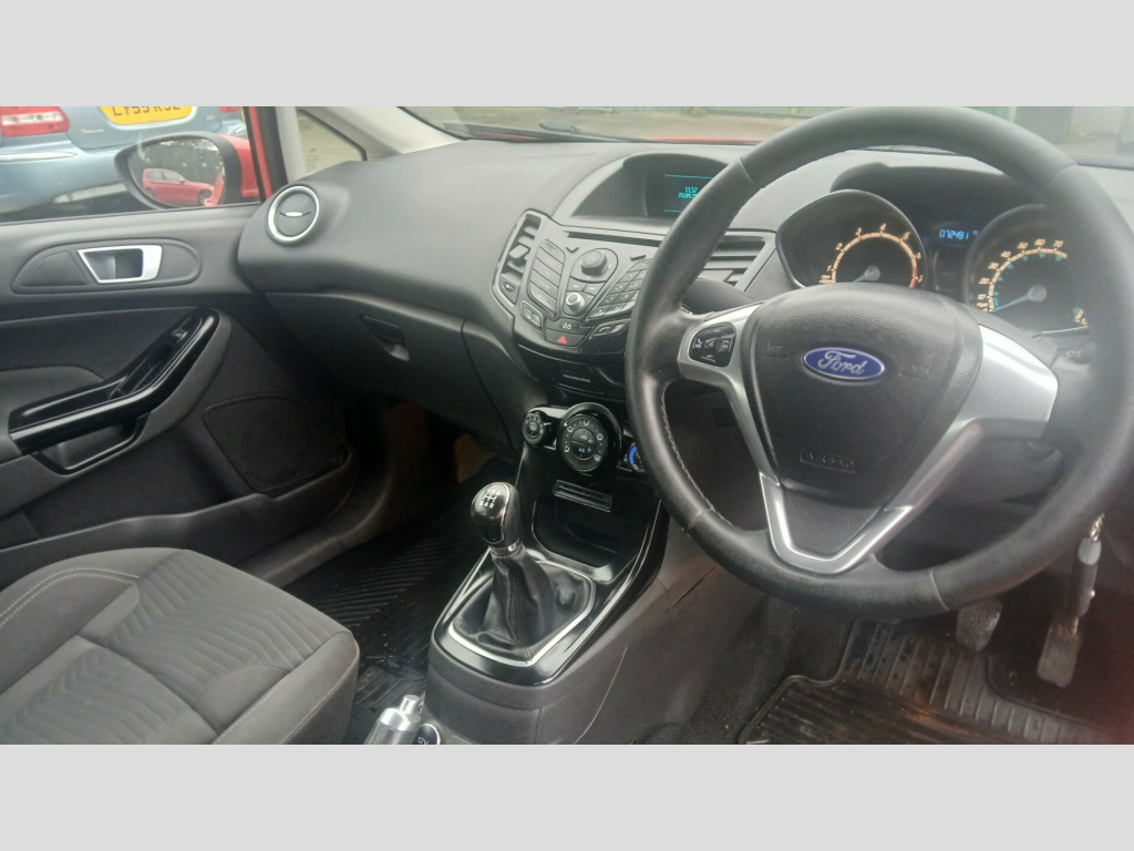 For sale is a 2013 Ford Fiesta 1.25 Zetec Hatchback with only 72491 miles on the clock. This 3-door petrol vehicle comes with a manual transmission and is Euro 5 compliant, making it ULEZ compliant. With MOT valid until 20/11/2026, this car is reliable and ready to hit the road. The spacious interior comfortably seats 5 people, with additional features including a Ford AM-FM CD audio system and USB and AUX connections for external music devices. The exterior boasts 15-inch alloy wheels and body-coloured front and rear bumpers, giving it a sleek and stylish look. Don't miss out on this fantastic hatchback, perfect for city driving and long journeys alike!,CAT N insurance Car , v power socket - front, ford am-fm cd audio system, usb and aux connection for external music devices, 15in alloy wheels - 5x2 spoke, bumpers - front and rear - body colour, chrome belt line finisher, door handles - body colour, door mirrors - electrically operated and heated, electric windows - front with one touch lowering drivers, front lower grille insert and surround - black, front upper grille - chrome finish surround, front upper grille insert - chrome bars, heated front windscreen, locking wheel nuts, rear spoiler - body colour, tailgate handle - body colour with chrome finisher, tyre inflator kit, abs - anti-lock braking system, airbags - curtain, airbags - driver side knee, airbags - front passenger, airbags - head and thorax, airbags - passenger deactivation, brake warning lights - automatic flashing of brake lights under heavy braking, drivers airbag, eba - emergency brake assist, ebd - electronic brakeforce distribution, esp - electronic stability programme, emergency brake warning - automatic hazard warning lights, ford easy fuel capless refuelling system with misfuel inhibitor, ips - intelligent protection system, passenger airbag deactivation indicator, remote central locking, seats - isofix mounting brackets for child seats, second remote ignition key, aesthetic lighting package, air conditioning - manual, centre console - with trinket tray - two cup holders, courtesy light - overhead with theatre-style dimming, courtesy lights with map reading lights, front seatback map pockets - driver and passenger, gear knob - leather, gearshift knob - leather-trimmed with chrome finish bezel, glovebox - illuminated, handbrake release knob - chrome, head restraints - 2-way adjustment, head restraints - rear 2-way adjustment, headliner - woven, interior door lever - chrome finish, led ambient courtesy lighting, leather-trimmed handbrake, loadspace compartment light, loadspace floor carpet, mykey, passengers seat manual 2-way adjustment, pollen filter, rake and reach steering adjustable, rear courtesy lights, rear seats back - carpet, removable package tray, seats - 60-40 split folding back and fixed cushion, seats - drivers 4-way adjustment, seats - front comfort style, steering wheel - 3-spoke - leather trimmed with bezel, steering wheel - multifunction, stowage pockets - driver and front passenger seatbacks, ecomode, epas - electric power assisted steering, gearshift indicator light, suspension - front stabiliser bar, trip computer, front fog lights - chrome bezel rings, headlights - courtesy delay, headlights - follow me home, headlights - halogen projector with silver bezel, high-mounted rear brake light