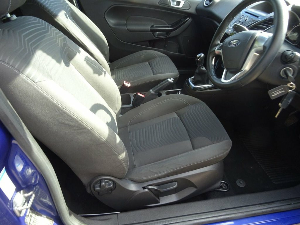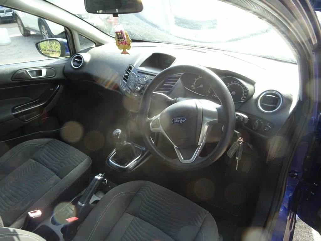 RECENT SERVICE AND CAM BELT &WATERPUMP AT 75000 MILES This 2015 Ford Fiesta Zetec is a fantastic example with only two previous owners and a clear vehicle history check. Powered by a reliable 1.25 litre petrol engine, this Euro 6 compliant model offers an economical and enjoyable driving experience. The Zetec trim level comes well equipped, featuring manual air conditioning to keep you comfortable in all conditions and Bluetooth hands free phone connectivity for safe and convenient calls on the go. This particular Fiesta Zetec stands out due to its low insurance group, making it an attractive and affordable option for many drivers. With its sensible ownership history and desirable features, this Ford Fiesta represents a smart choice for those seeking a dependable and well maintained compact car. 12V Power Socket - Front, 15in Alloy Wheels - 5x2 Spoke, ABS - Anti-lock Braking System, Aesthetic Lighting Package, Air Conditioning - Manual, Airbags - Curtain, Airbags - Driver Side Knee, Airbags - Front Passenger, Airbags - Head and Thorax, Airbags - Passenger Deactivation, AUX Connection, Bluetooth Hands-free Phone, Body Colour Exterior Mirrors, Brake Warning Lights - Automatic Flashin, Bumpers - Front and Rear - Body Colour, Centre Console - with Trinket Tray - Two, Chrome Belt Line Finisher, Courtesy Light - Overhead with Theatre-S, Courtesy Lights with Map Reading Lights, DDS - Deflation Detection System, Door Handles - Body Colour, Door Mirrors - Electrically Operated and, Drivers A