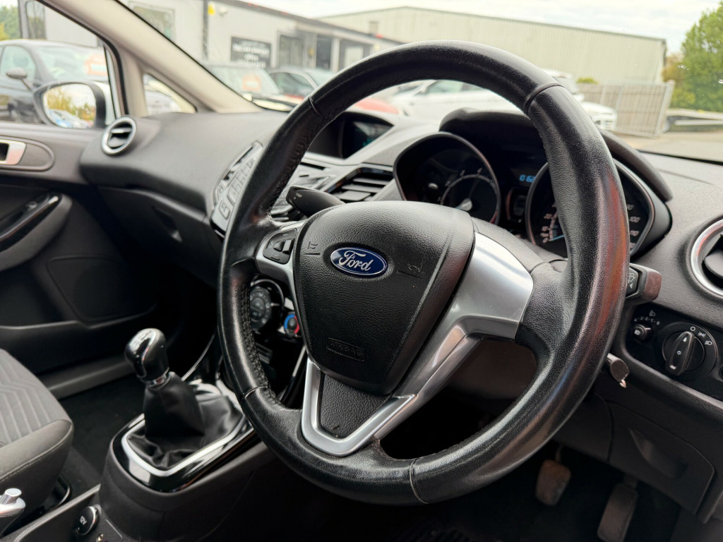 This 2015 Ford Fiesta 1.25 Zetec Hatchback 3dr is a reliable and economical vehicle with 101,000 miles on the clock, powered by a petrol engine. It is ULEZ compliant and comes with MOT until 20/11/2025, making it ready for the road. The hatchback offers 5 seats and 3 doors, making it perfect for small families or city driving. The car is equipped with features such as a 12V power socket in the front, AUX connection, Bluetooth hands-free phone capability, and emergency assistance. The Ford AM-FM CD audio system further enhances the driving experience. With its Euro 6 emission standard and 82 ps, this Fiesta is a practical and efficient choice for anyone in search of a versatile and dependable vehicle , will come with 12 months mot , RAC warranty , px and car , van , delivery available, give us a call today to see how we can help get you into your new car v power socket - front, aux connection, bluetooth hands-free phone, emergency assistance, ford am-fm cd audio system, ford dab with ford sync, ford sync, speakers - x6, usb connection, 15in alloy wheels - 5x2 spoke, body colour exterior mirrors, bumpers - front and rear - body colour, chrome belt line finisher, door handles - body colour, door mirrors - electrically operated and heated, electric windows - front with one touch lowering drivers, front lower grille insert and surround - black, front upper grille - chrome finish surround, front upper grille insert - chrome bars, heated front windscreen, locking wheel nuts, rear spoiler - body colour, tailgate handle - body colour with chrome finisher, tinted glass, tyre inflator kit, abs - anti-lock braking system, airbags - curtain, airbags - driver side knee, airbags - front passenger, airbags - head and thorax, airbags - passenger deactivation, brake warning lights - automatic flashing of brake lights under heavy braking, drivers airbag, eba - emergency brake assist, ebd - electronic brakeforce distribution, esp - electronic stability programme, emergency brake warning - automatic hazard warning lights, engine immobiliser, ford easy fuel capless refuelling system with misfuel inhibitor, hill start assist, ips - intelligent protection system, remote central locking, seats - isofix mounting brackets for child seats, traction control - tc, aesthetic lighting package, air conditioning - manual, centre console - with trinket tray - two cup holders, courtesy light - overhead with theatre-style dimming, courtesy lights with map reading lights, flow through centre console, front seatback map pockets - driver and passenger, gear knob - leather, gearshift knob - leather-trimmed with chrome finish bezel, glovebox - illuminated, head restraints - 2-way adjustment, head restraints - rear 2-way adjustment, headliner - woven, interior door lever - chrome finish, leather-trimmed handbrake, loadspace compartment light, loadspace floor carpet, mykey, pollen filter, rake and reach steering adjustable, rear courtesy lights, removable package tray, seats - 60-40 split folding back and fixed cushion, seats - drivers 4-way adjustment, seats - front comfort style, steering wheel - 3-spoke - leather trimmed with bezel, steering wheel - multifunction, stowage pockets - driver and front passenger seatbacks, dds - deflation detection system, ecomode, epas - electric power assisted steering, gearshift indicator light, trip computer, tyre pressure monitoring system, voice control - audio, front fog lights - chrome bezel rings, headlights - halogen projector with silver bezel, high-mounted rear brake light, led daytime running lights