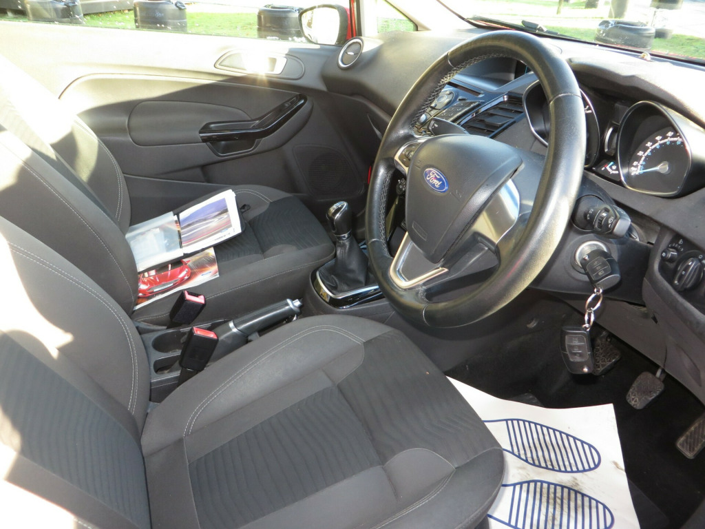 For sale is a 2015 Ford Fiesta 1.25 Zetec Hatchback with a petrol engine and manual transmission. This Euro 6 compliant vehicle has 68062 miles , with Full Service History. The car is ULEZ compliant and features 5 seats and 3 doors, making it perfect for city driving. The interior boasts modern conveniences such as a 12V power socket, AUX connection, Bluetooth hands-free phone capabilities, and emergency assistance. The Ford AM-FM CD audio system provides high-quality entertainment for all passengers. This reliable and efficient hatchback is ready for a new owner to enjoy its practicality and performance on the road. v power socket - front, aux connection, bluetooth hands-free phone, emergency assistance, ford am-fm cd audio system, ford dab with ford sync, ford sync, speakers - x6, usb connection, 15in alloy wheels - 5x2 spoke, body colour exterior mirrors, bumpers - front and rear - body colour, chrome belt line finisher, door handles - body colour, door mirrors - electrically operated and heated, electric windows - front with one touch lowering drivers, front lower grille insert and surround - black, front upper grille - chrome finish surround, front upper grille insert - chrome bars, heated front windscreen, locking wheel nuts, rear spoiler - body colour, tailgate handle - body colour with chrome finisher, tinted glass, tyre inflator kit, abs - anti-lock braking system, airbags - curtain, airbags - driver side knee, airbags - front passenger, airbags - head and thorax, airbags - passenger deactivation, brake warning lights - automatic flashing of brake lights under heavy braking, drivers airbag, eba - emergency brake assist, ebd - electronic brakeforce distribution, esp - electronic stability programme, emergency brake warning - automatic hazard warning lights, engine immobiliser, ford easy fuel capless refuelling system with misfuel inhibitor, hill start assist, ips - intelligent protection system, remote central locking, seats - isofix mounting brackets for child seats, traction control - tc, aesthetic lighting package, air conditioning - manual, centre console - with trinket tray - two cup holders, courtesy light - overhead with theatre-style dimming, courtesy lights with map reading lights, flow through centre console, front seatback map pockets - driver and passenger, gear knob - leather, gearshift knob - leather-trimmed with chrome finish bezel, glovebox - illuminated, head restraints - 2-way adjustment, head restraints - rear 2-way adjustment, headliner - woven, interior door lever - chrome finish, leather-trimmed handbrake, loadspace compartment light, loadspace floor carpet, mykey, pollen filter, rake and reach steering adjustable, rear courtesy lights, removable package tray, seats - 60-40 split folding back and fixed cushion, seats - drivers 4-way adjustment, seats - front comfort style, steering wheel - 3-spoke - leather trimmed with bezel, steering wheel - multifunction, stowage pockets - driver and front passenger seatbacks, dds - deflation detection system, ecomode, epas - electric power assisted steering, gearshift indicator light, trip computer, tyre pressure monitoring system, voice control - audio, front fog lights - chrome bezel rings, headlights - halogen projector with silver bezel, high-mounted rear brake light, led daytime running lights