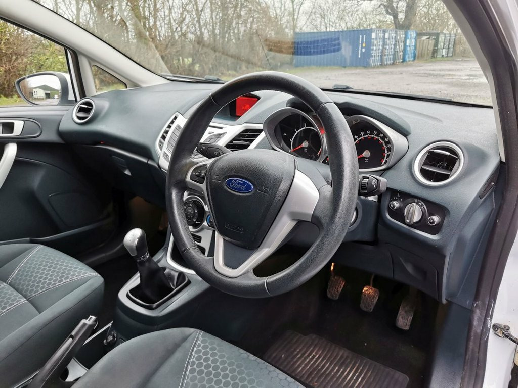 Presenting this excellent example of the popular Ford Fiesta Zetec, finished in smart Frozen White. With just three previous owners and a sensible 70,200 miles on the clock, this car offers fantastic value and is ready to drive away. Crucially, this Fiesta has been well maintained with six recorded services. Most significantly, in January 2026 at 70,194 miles, it underwent a major full service including a vital cambelt replacement, costing nearly £800, and received an advisory-free MOT, providing real peace of mind for the next owner. It is also confirmed as ULEZ and CAZ compliant, so you can drive worry-free in city zones. The desirable Zetec specification means you enjoy a great range of features. These include stylish alloy wheels, air conditioning, a heated front windscreen, and a multi-function steering wheel. For connectivity, there is Bluetooth, plus AUX and USB inputs, making every journey more enjoyable. We can make owning this car simple with competitive finance options available, with rates starting from just 8.9% APR. For added protection, we offer RAC extended warranties; choose a 12-month policy for £599 or a comprehensive 24-month policy for £899, which also includes 12 months of complimentary RAC breakdown cover. This well-presented, recently serviced Fiesta represents a solid and economical choice. Arrange a viewing today to appreciate its condition and drive. 15in Alloy Wheels (195/50 Tyres) with L, 60/40 Split Folding Back and Fixed Cushi, Accessory Power Socket (12V), Anti-Lock Brakes, Emergency Brake Assist, Body Coloured Bumpers, Body Coloured Rear Spoiler, Centre Console, Centre High - Mounted Rear Brake Light, Centre Rear Seat Belt, Drivers Airbag, Drivers Knee Airbag, Electric Power Assisted Steering (EPAS), Electrically - Operated Front Windows wi, Electrically - Operated/Heated Door Mirr, Electronic Brake - Force Distribution (E, Electronic Stability Programme (ESP), Four Front Speakers, Front and Rear Head Restraints, Front Fog Lights with Chrome Bezel Rings, Front Side Airbag (Head and Thorax), Immobiliser, ISOFIX Mounting Brackets fo
